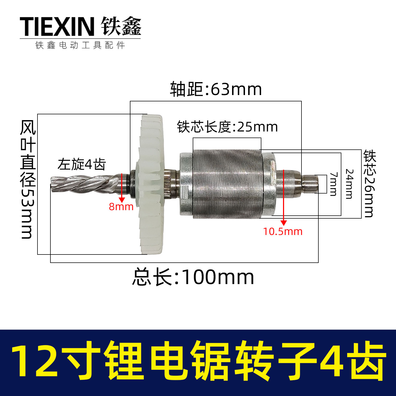 【货号00006】通用型12寸无刷锂电电链锯电机电链锯转子充电电锯转子4齿
