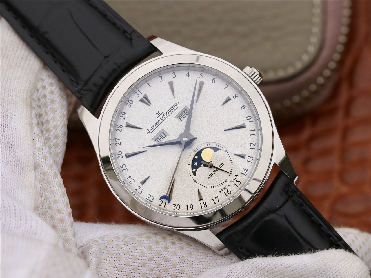 OM积家全月相大师系列。所以功能及外观均与原版一致 细节分解: