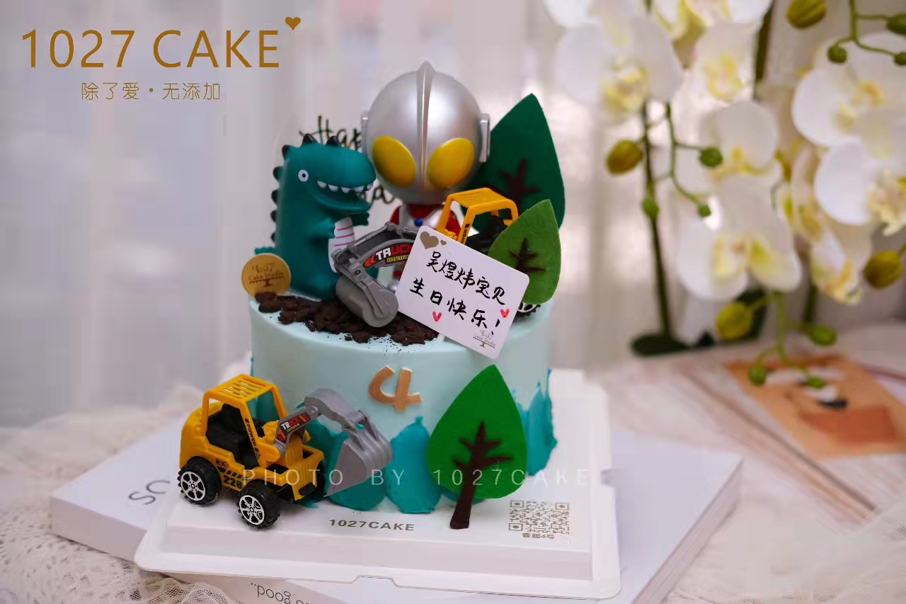 1027CAKE | 奥特曼和小怪兽 挖土机工程车主题