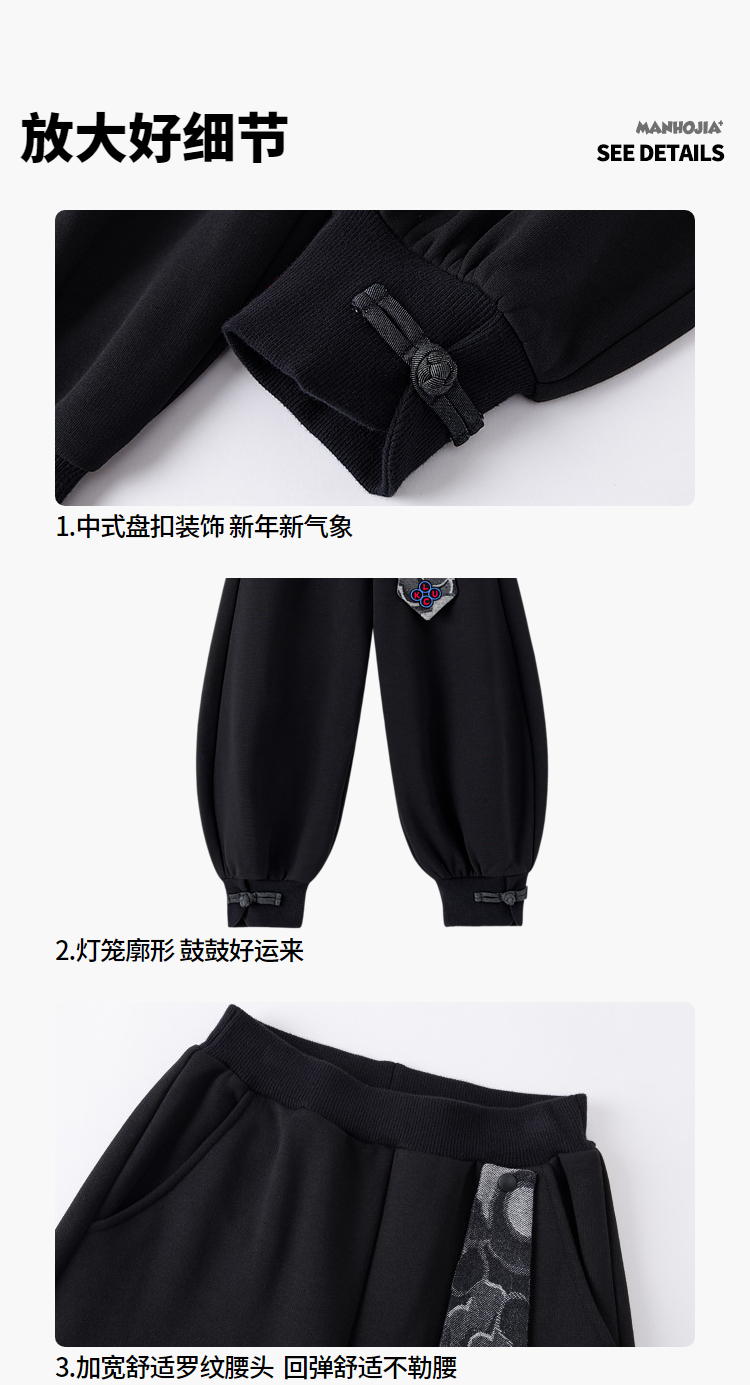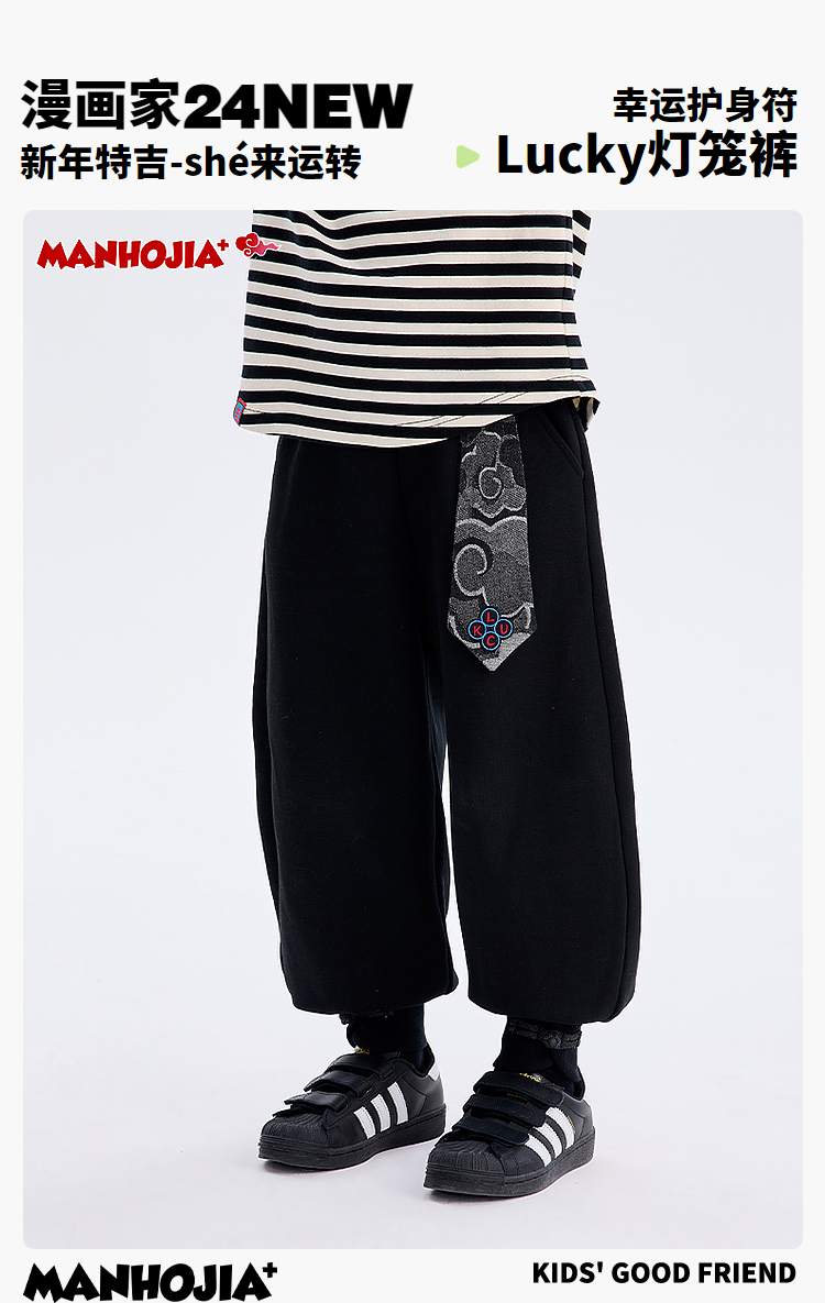 MANHOJIA【好运护身符】漫画家新中式新年云纹飘带手工盘扣灯笼裤