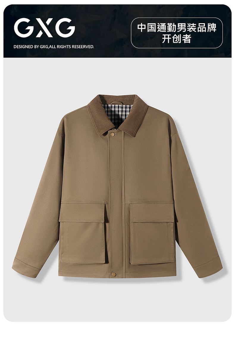 GXG男装【工装口袋】26春季时尚复古休闲简约翻领男式行政夹克K&C