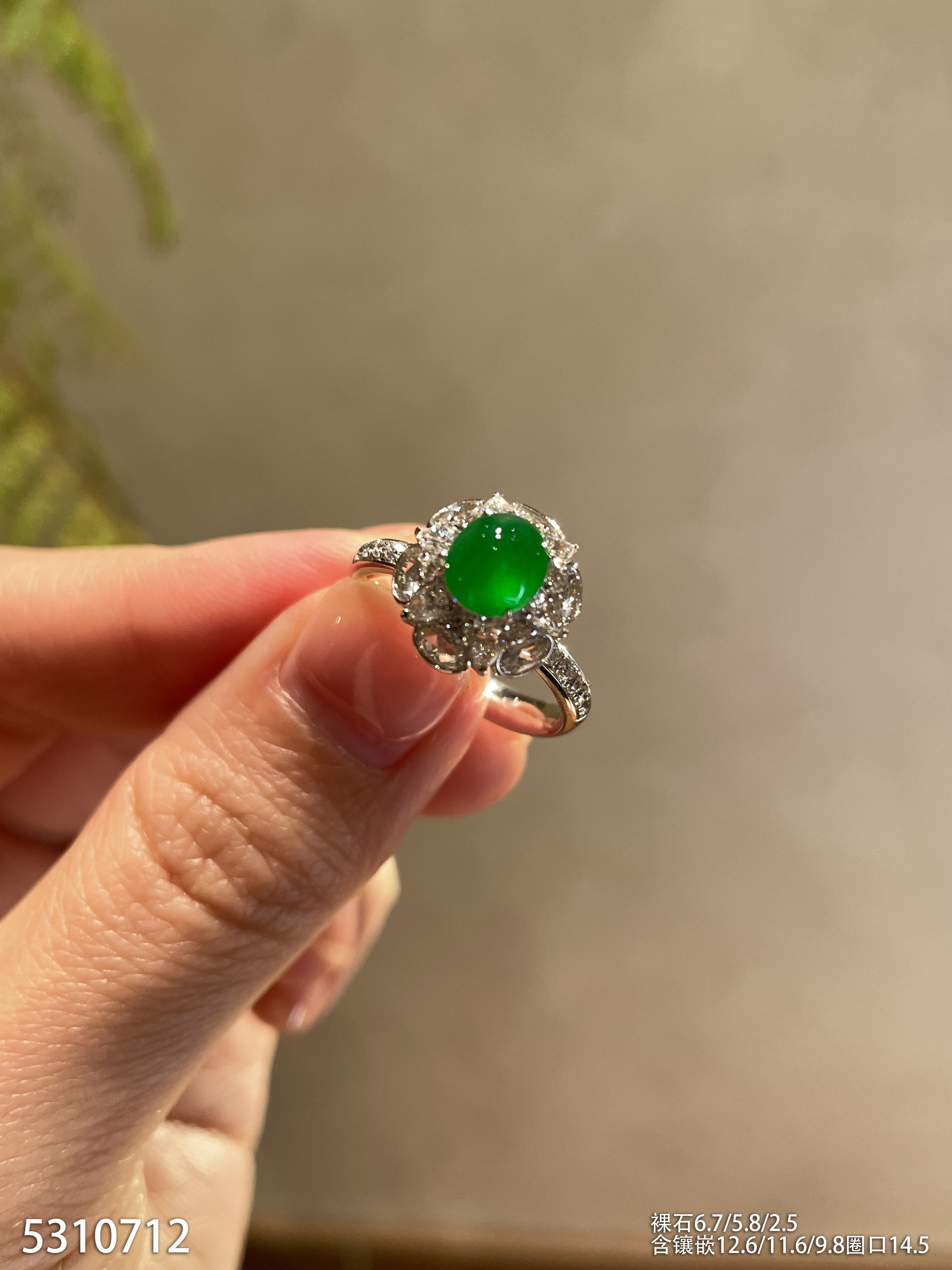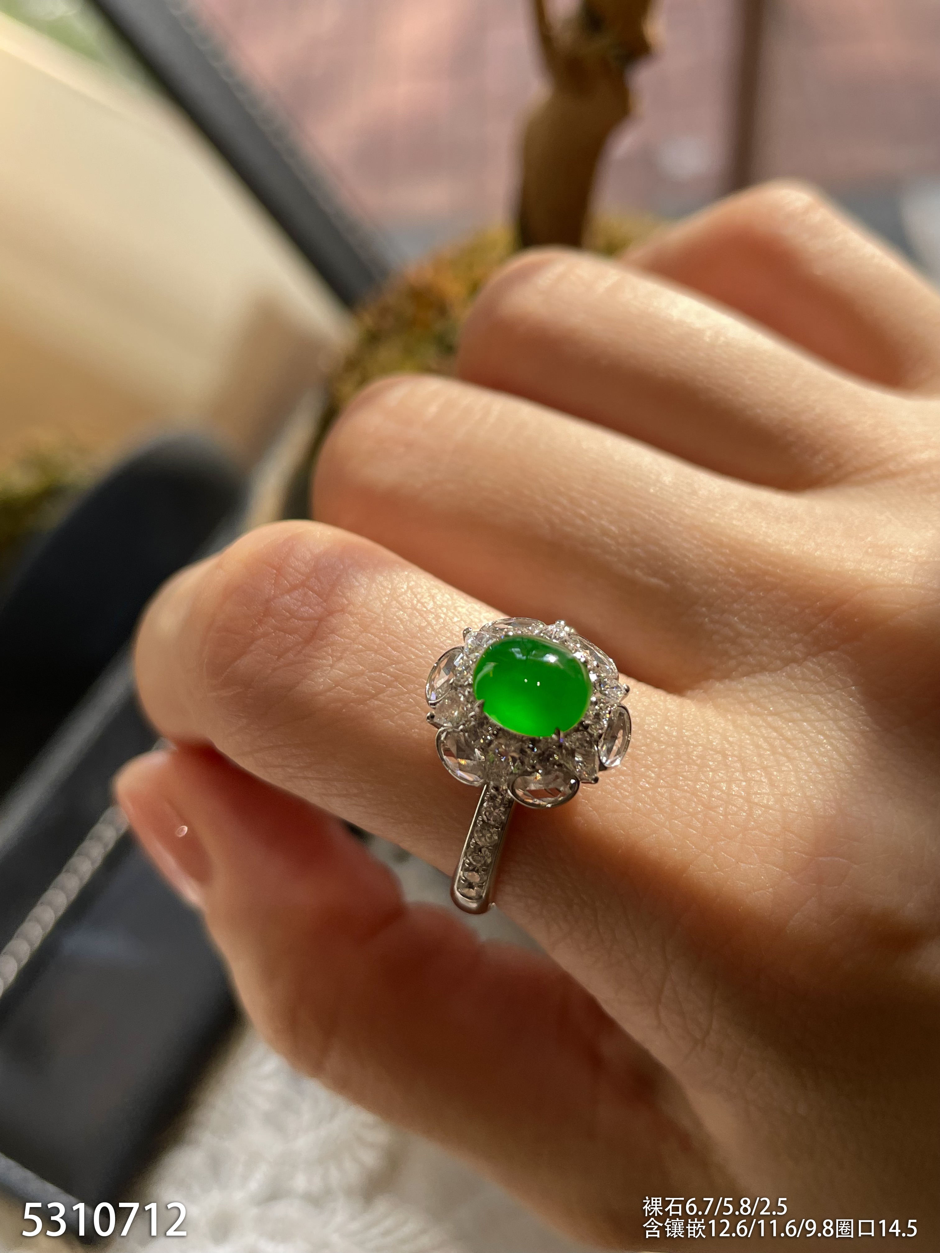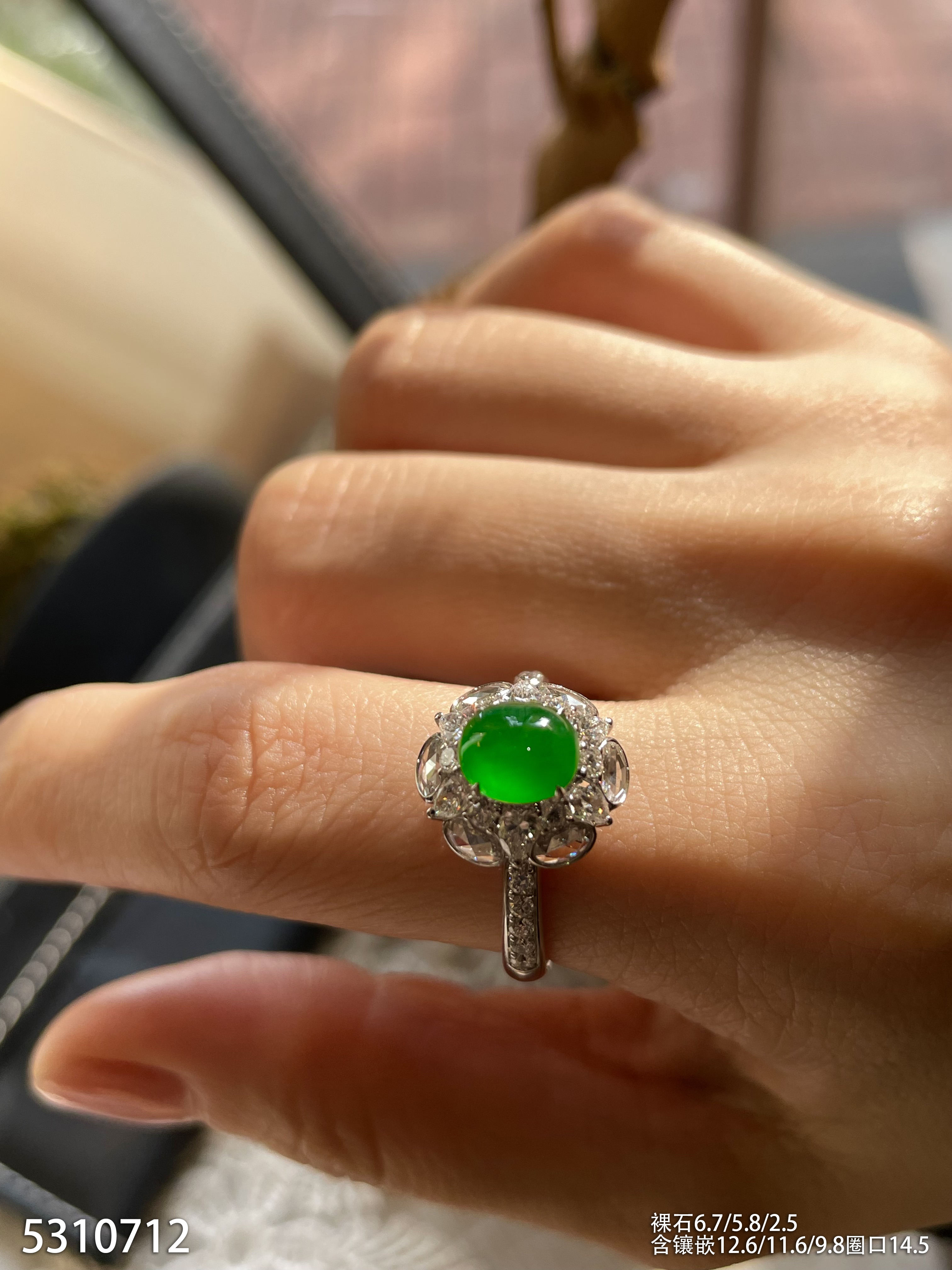 玻璃种蛋面戒指【6300503】具体价格微信咨询