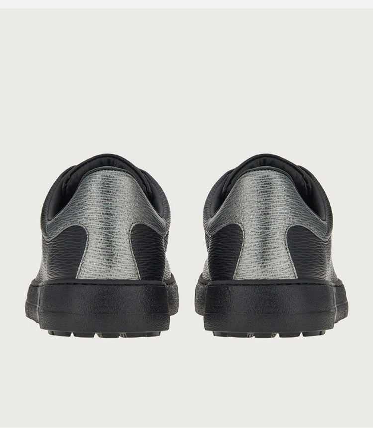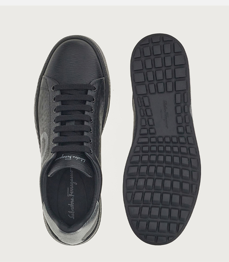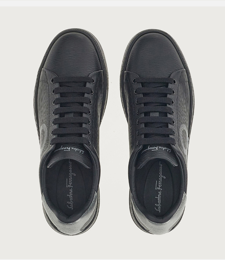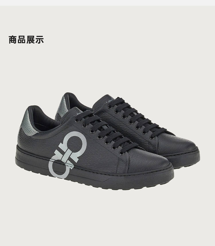 FERRAGAMO 菲拉格慕 男士皮革 GANCINI 印花系带休闲运动鞋 黑色 753088