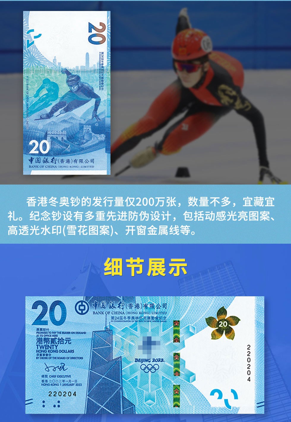 评级版《香港2022年北京冬奥会纪念钞》