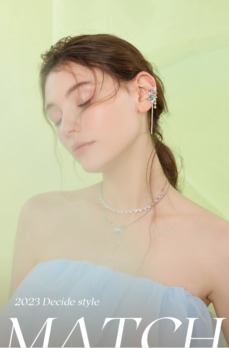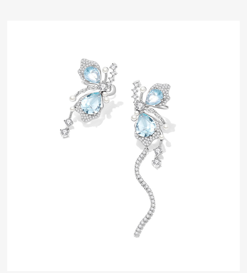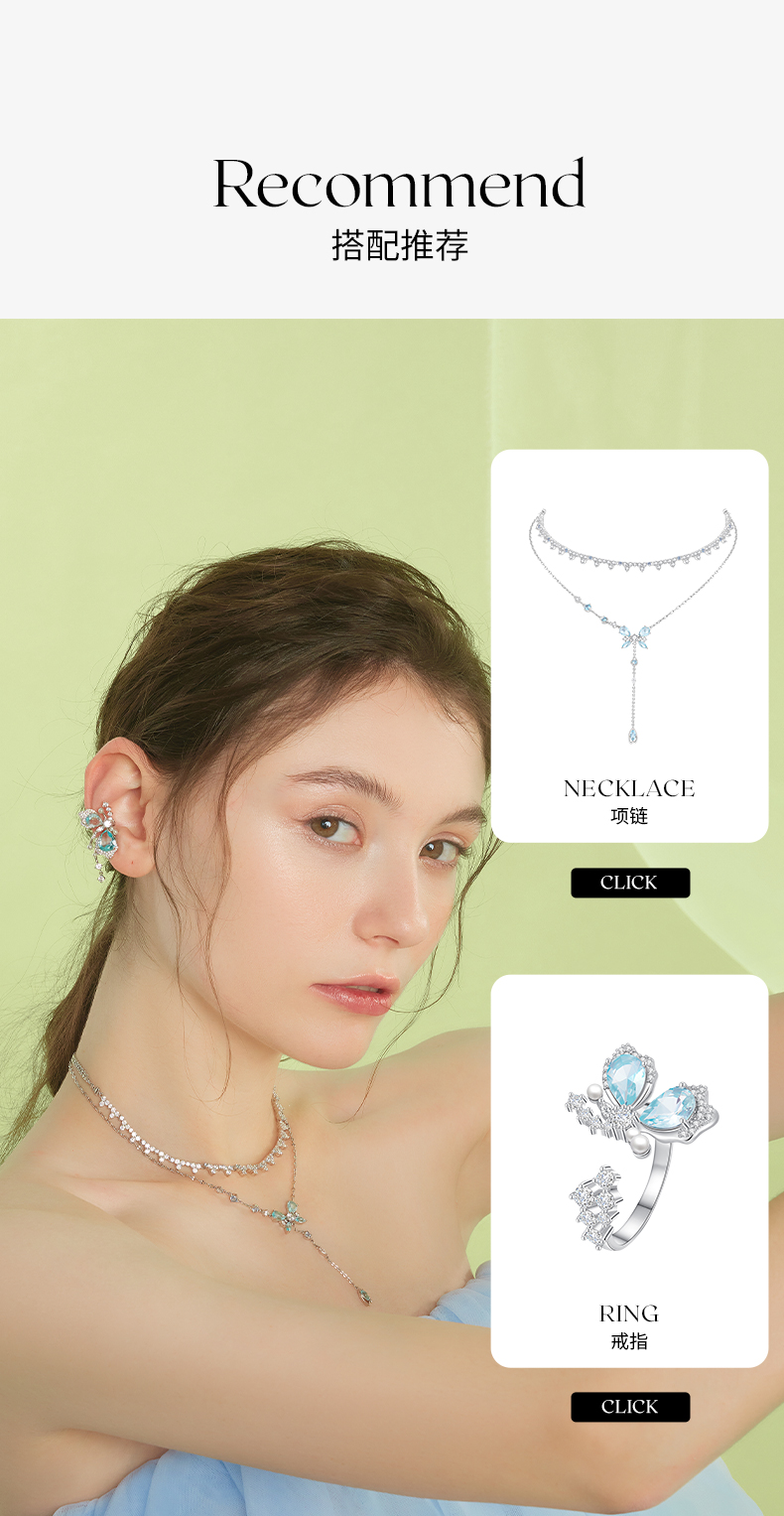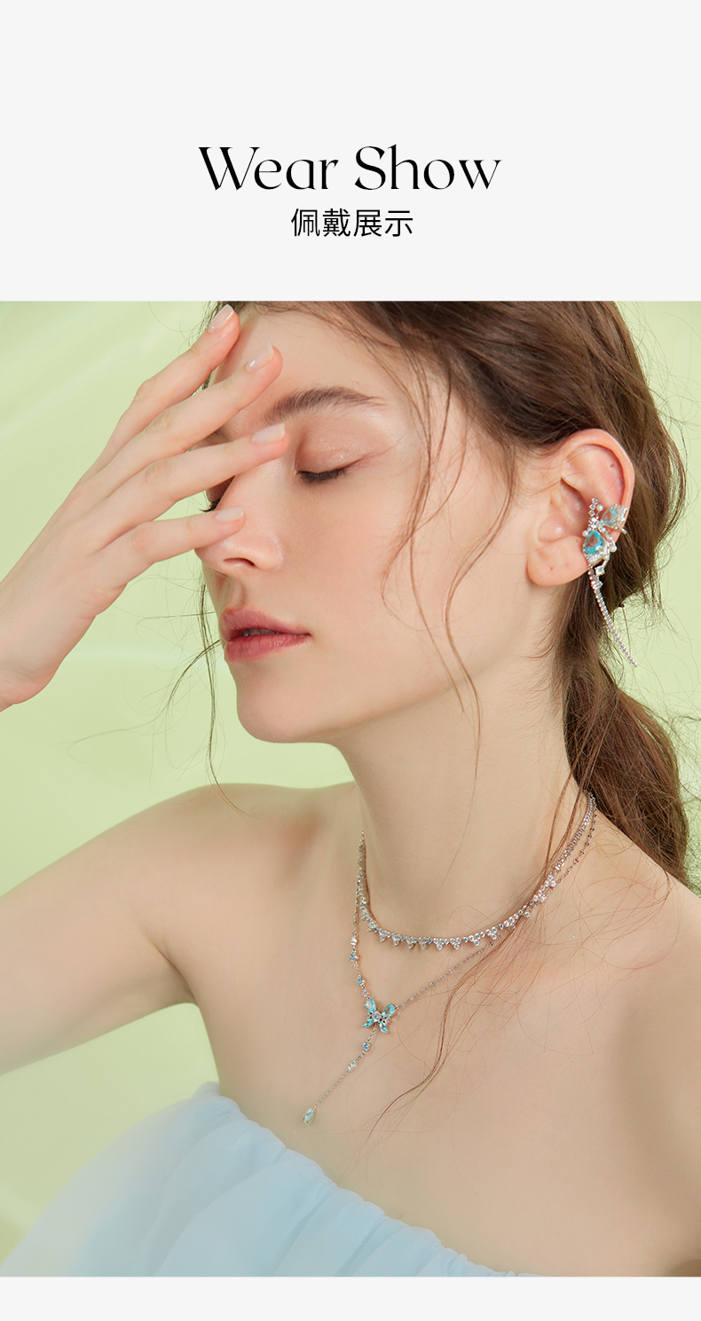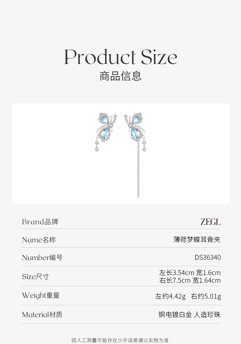 ZEGL设计师薄荷梦蝶系列蝴蝶不对称耳夹女无耳洞耳骨夹耳环耳饰品