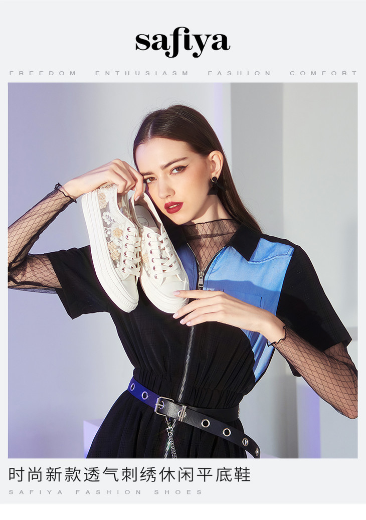 Safiya索菲娅丝绸之路刺绣板鞋2022款网纱透气休闲鞋SF23112107