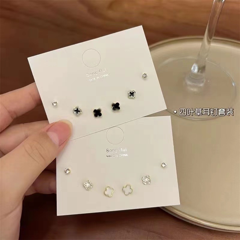 「3对!四叶草耳钉套装」组合韩国网红同款简约耳环睡觉不用摘小巧耳饰时尚饰品