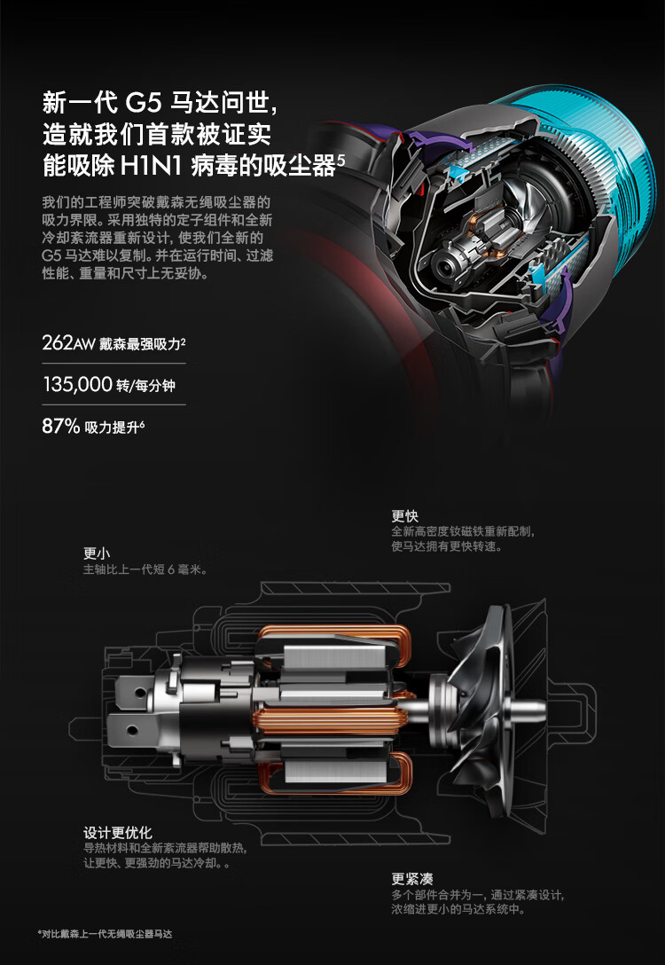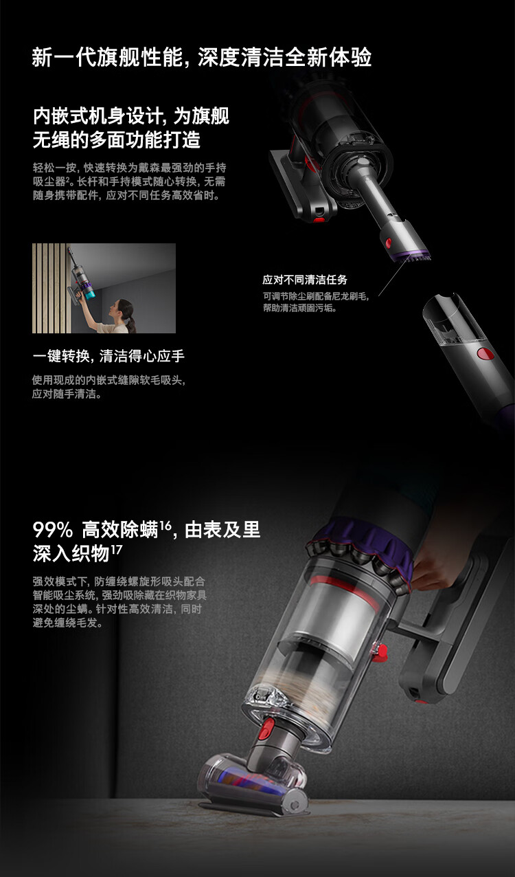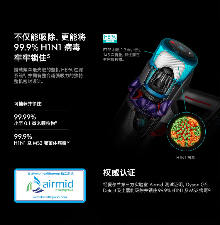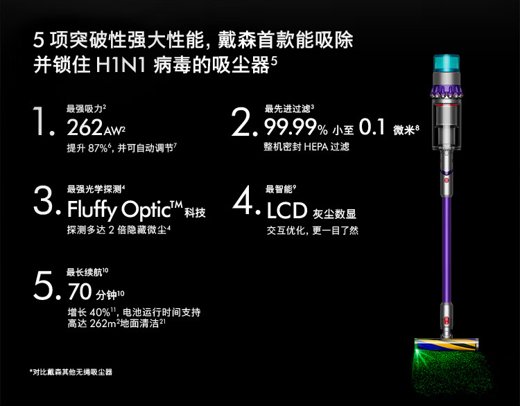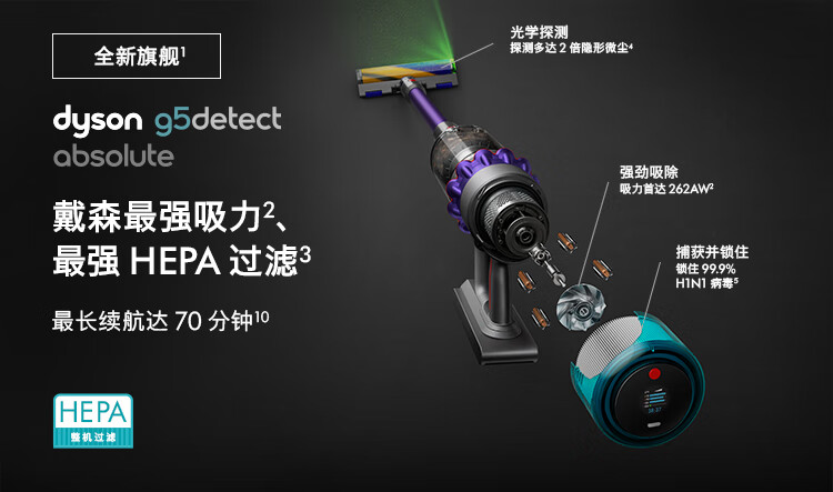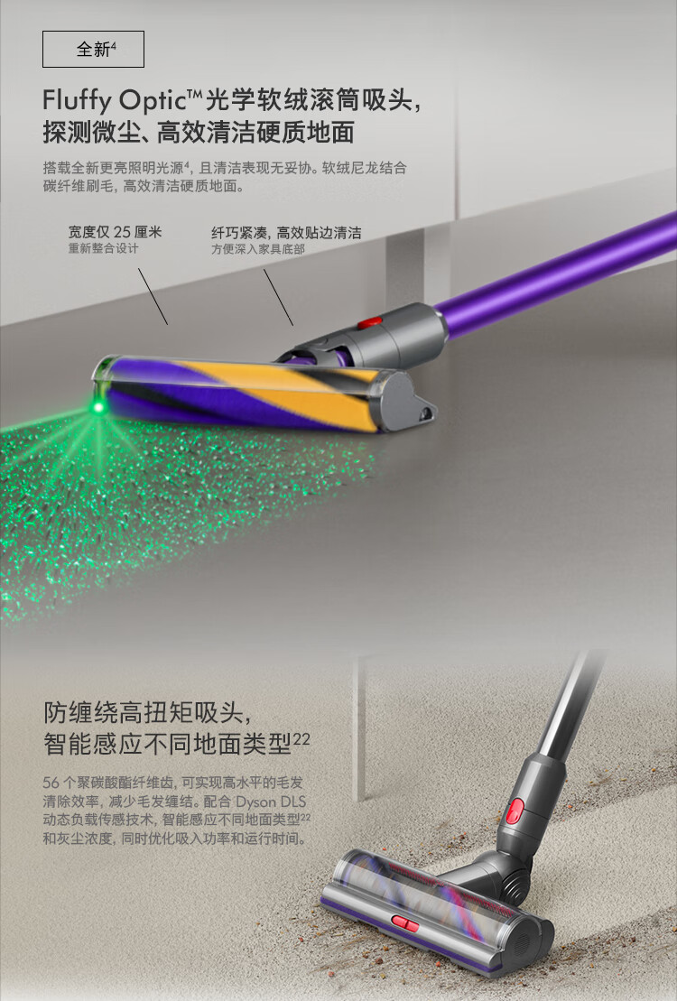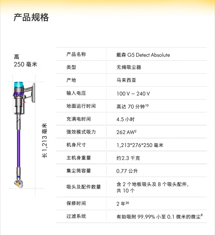 戴森(DYSON)G5 Detect Absolute智能无绳手持吸尘器家用除螨 地毯 紫色