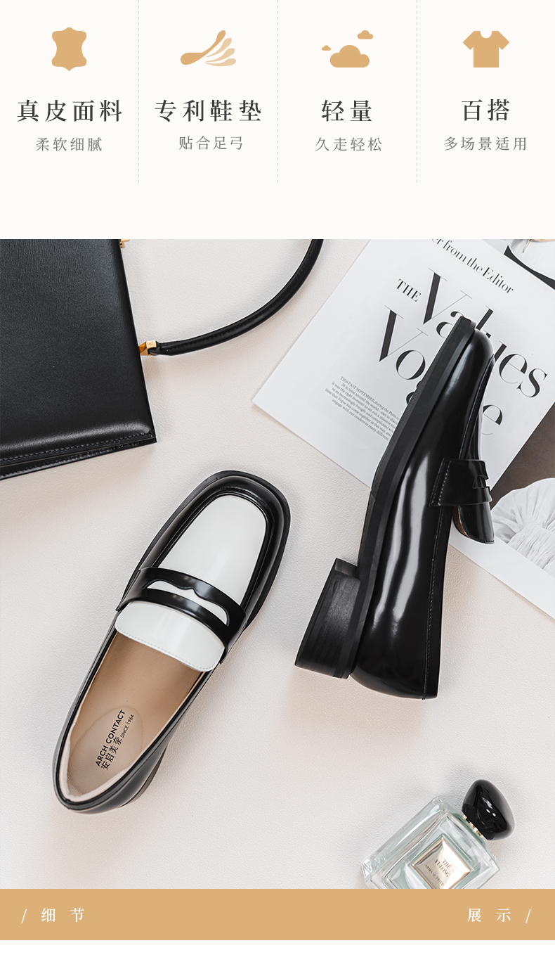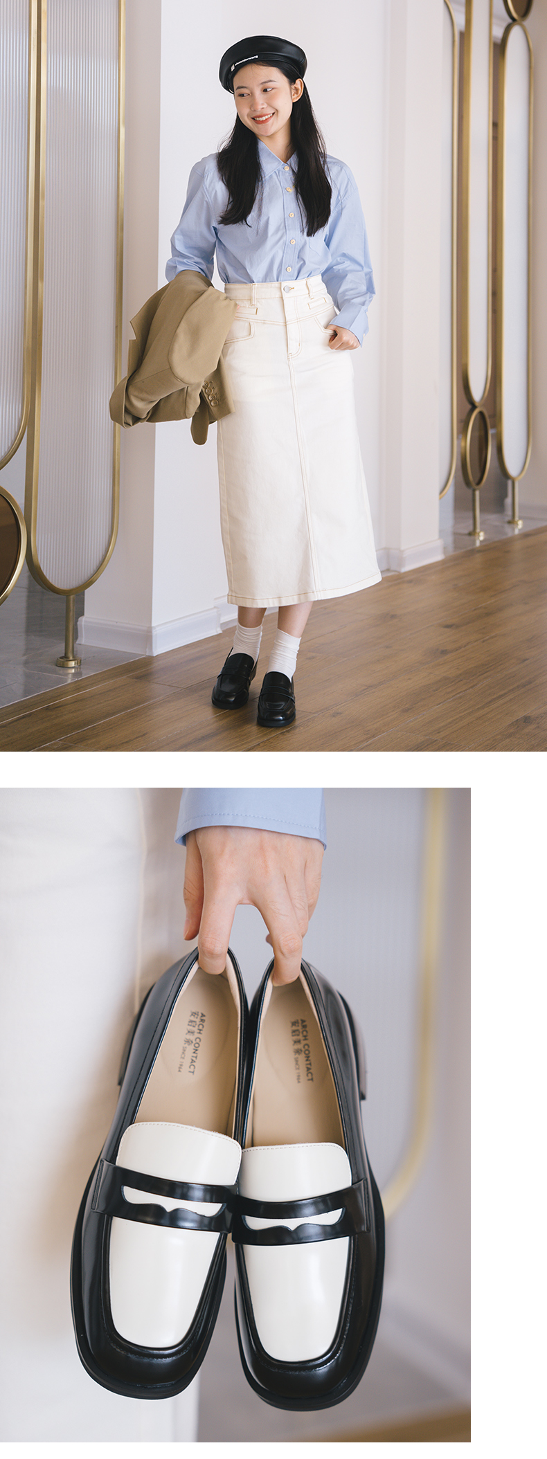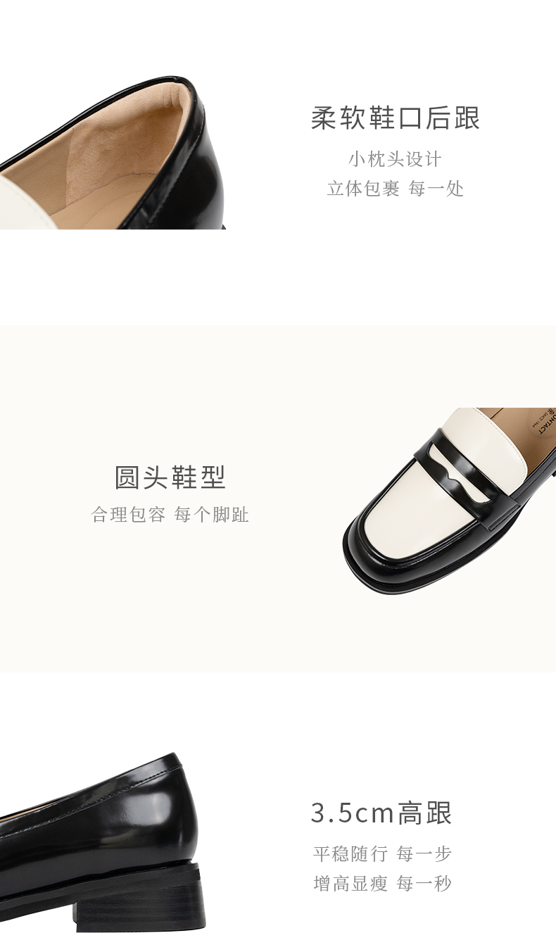 ARCHCONTACT安启美奈英伦风法式拼色圆头中跟乐福鞋52834