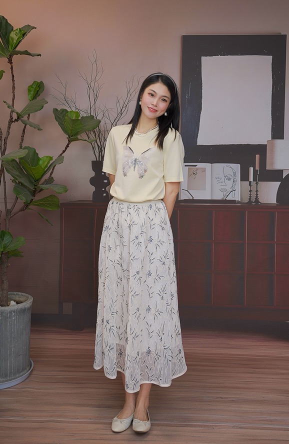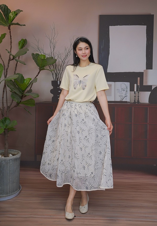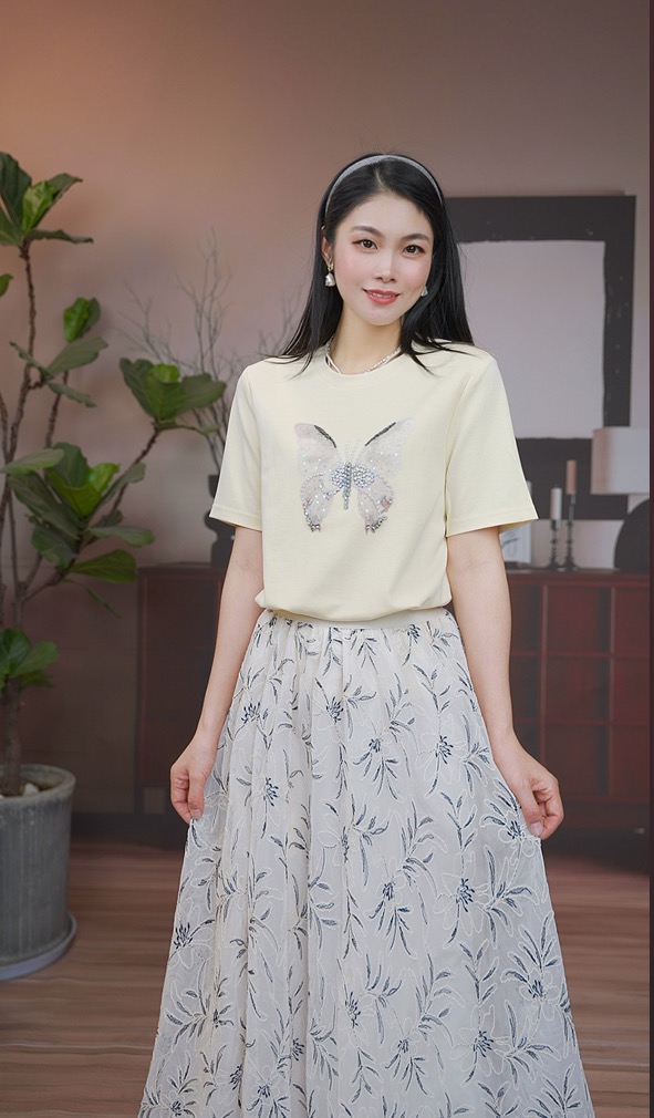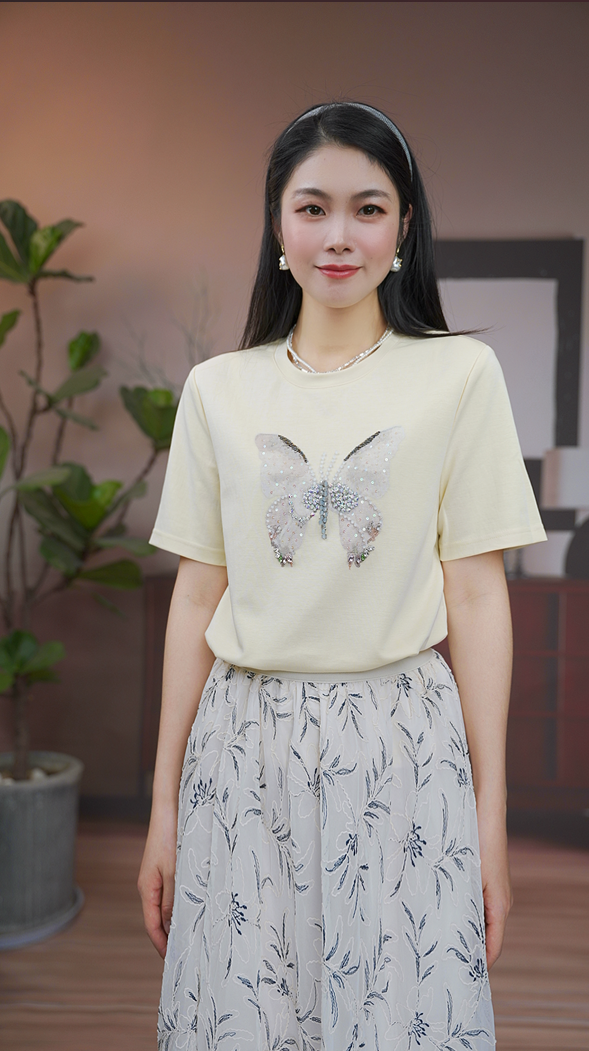司歌休闲圆领特色重工盯珠圆领盯珠T恤上衣女T93G9232
