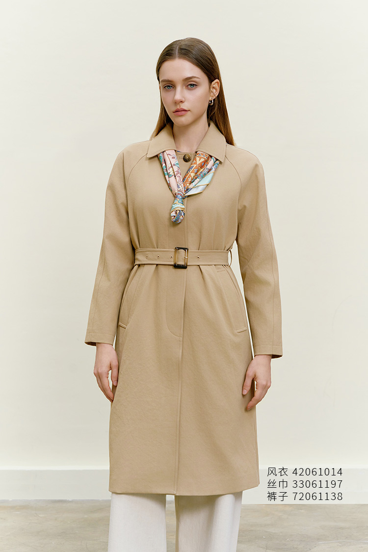 【单排扣腰带风衣】26年春季新品女士中长款防风外套