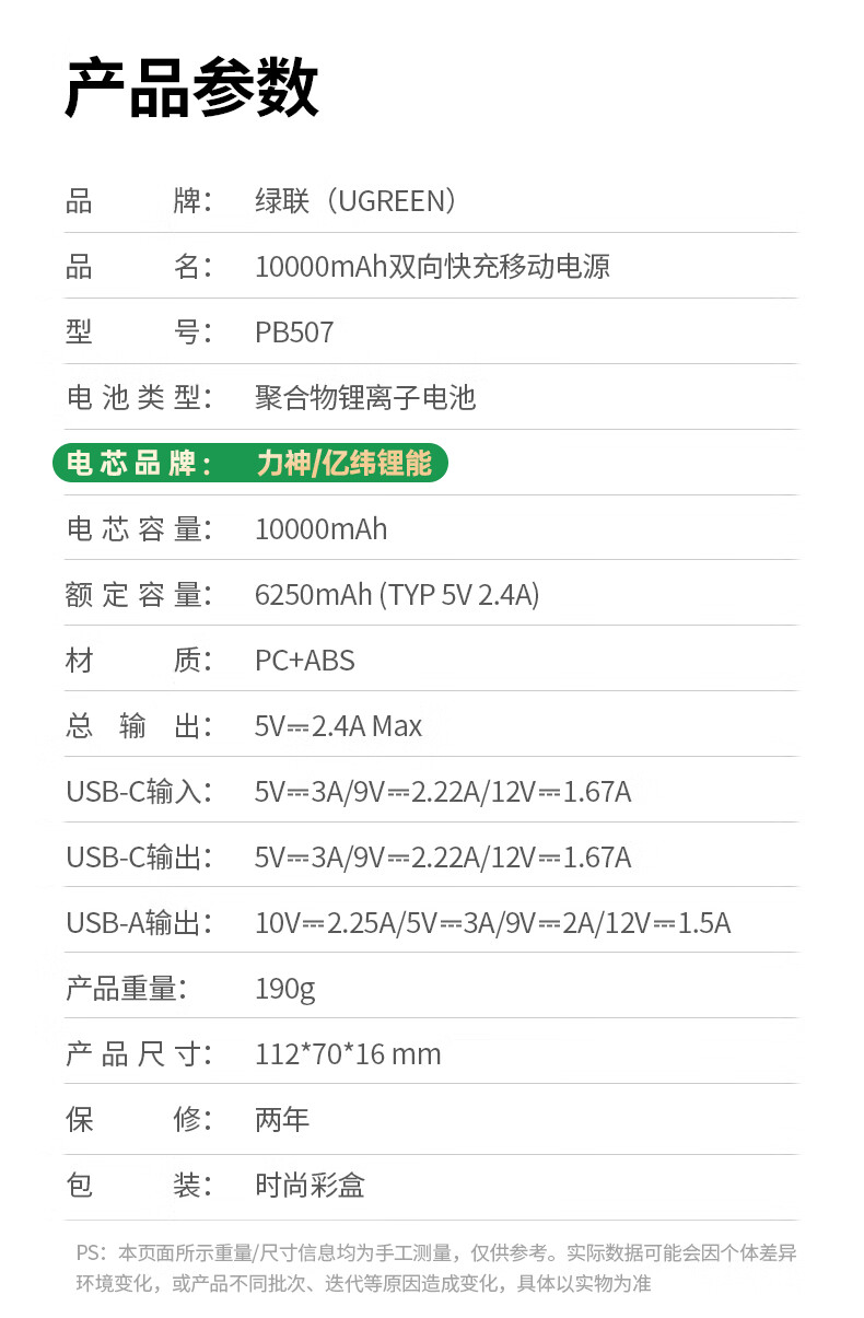 UGREEN绿联 10000mAh 20W 移动电源