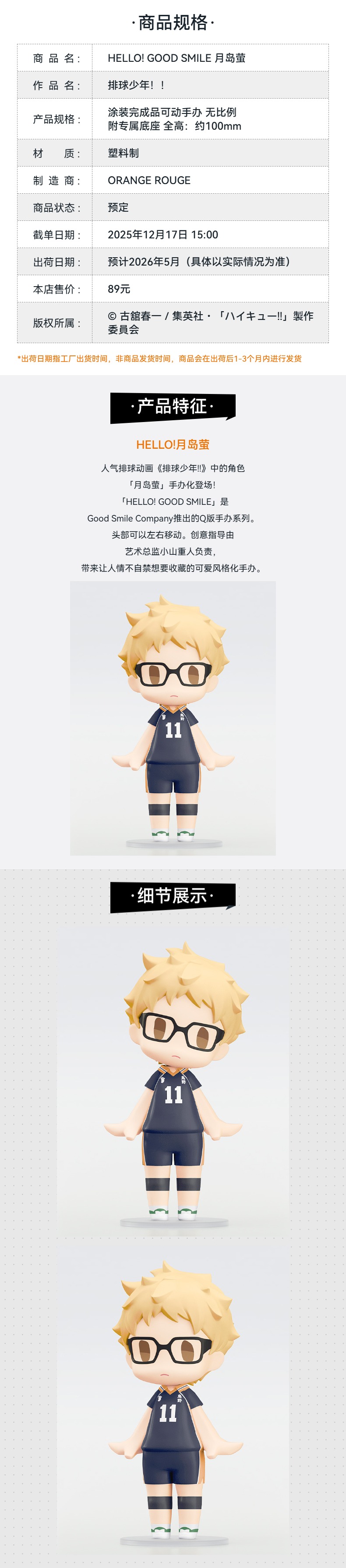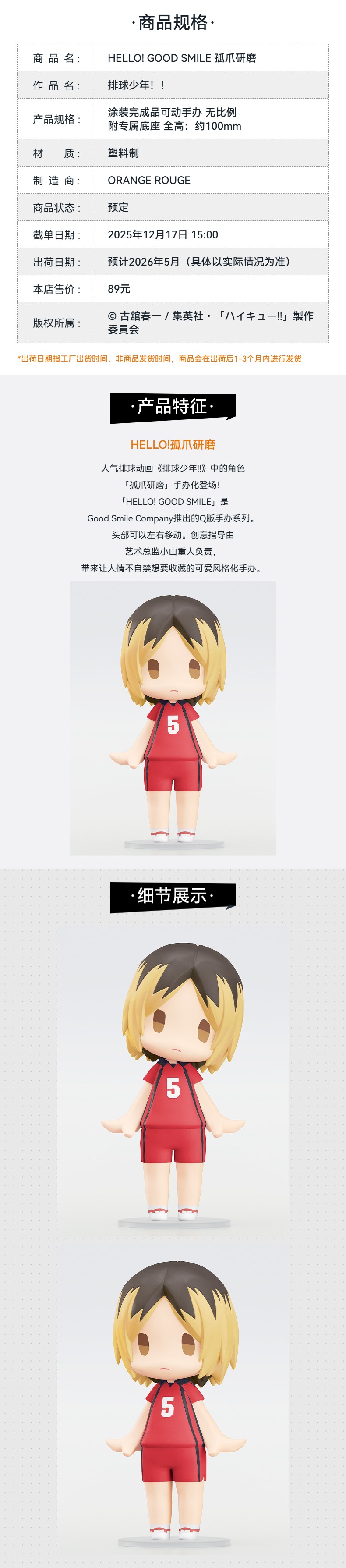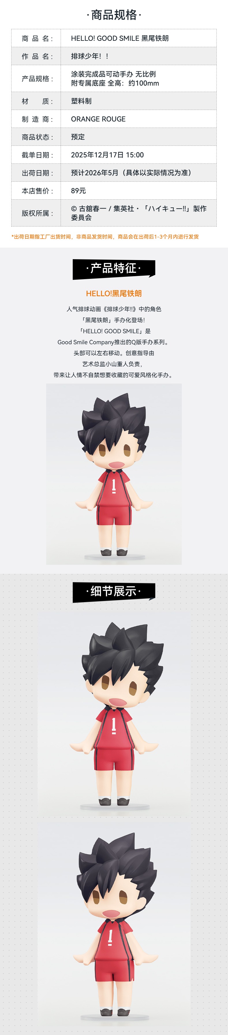 【GSC预售定金】HELLO! GOOD SMILE 孤爪研磨/黑尾铁朗/月岛萤 排球少年!!