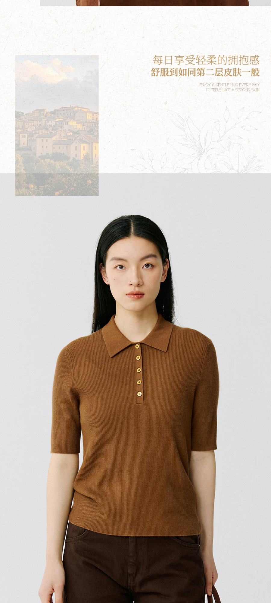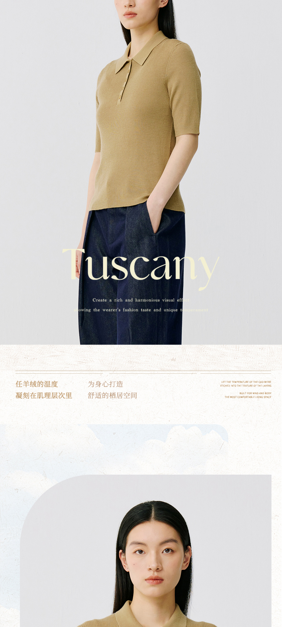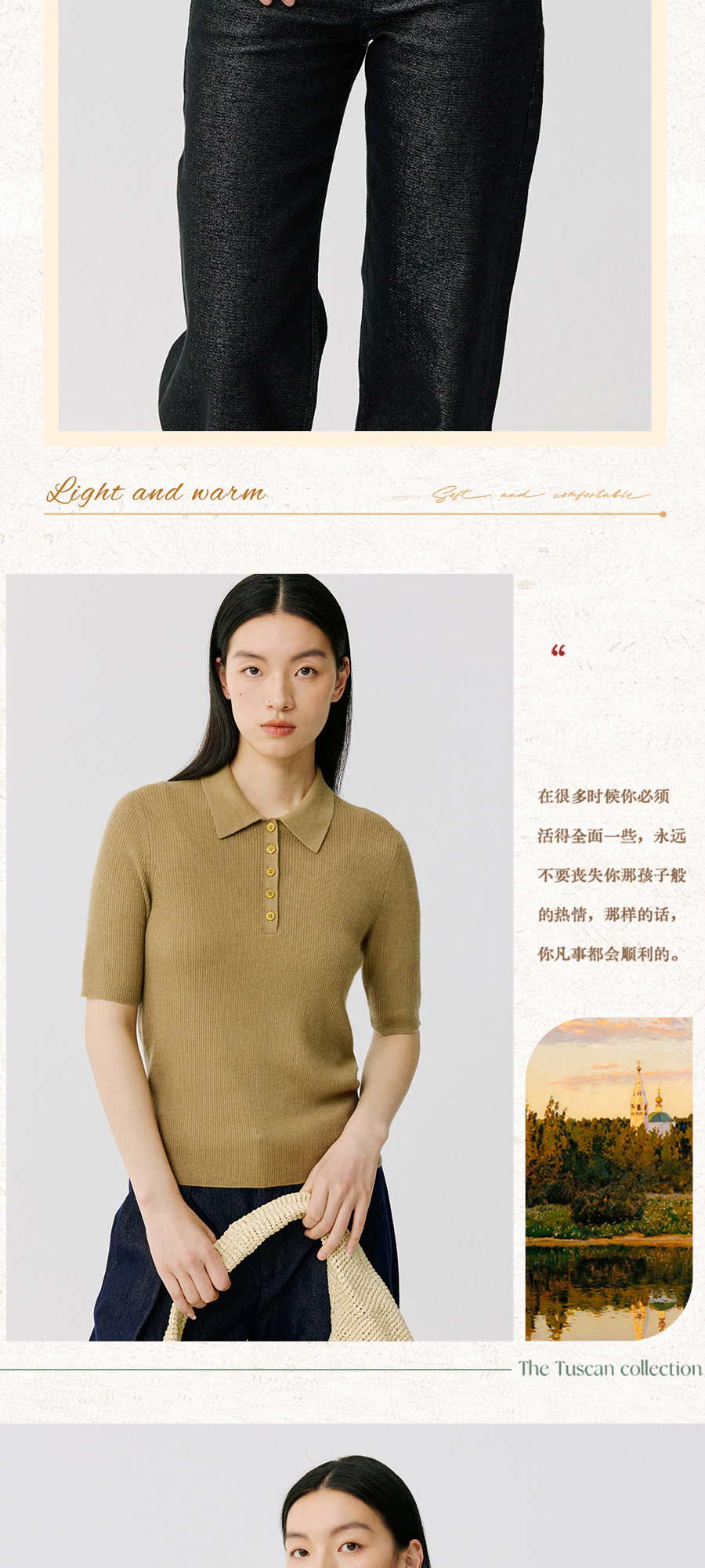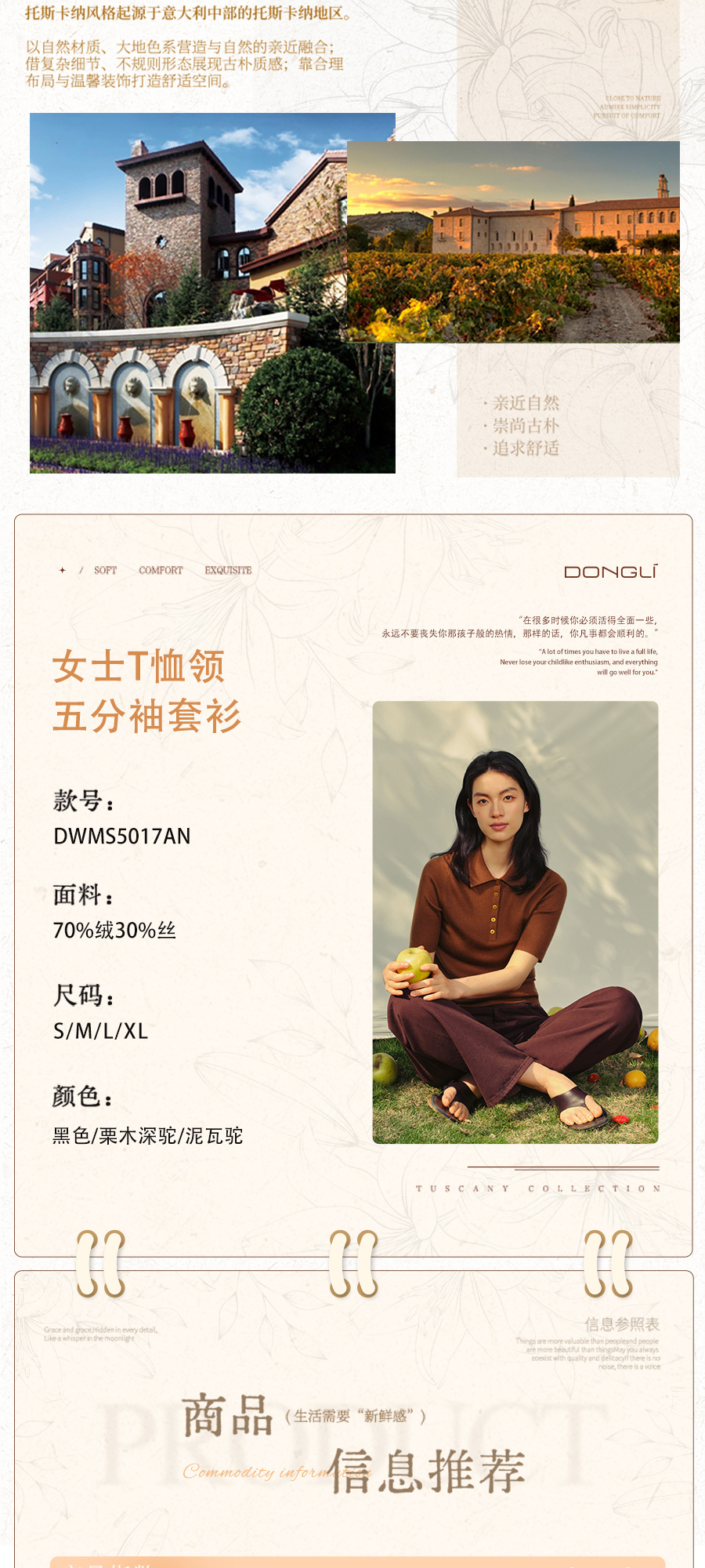东黎 • 托斯卡纳系列—无尽夏 丝绒女士T恤领五分袖套衫 5017