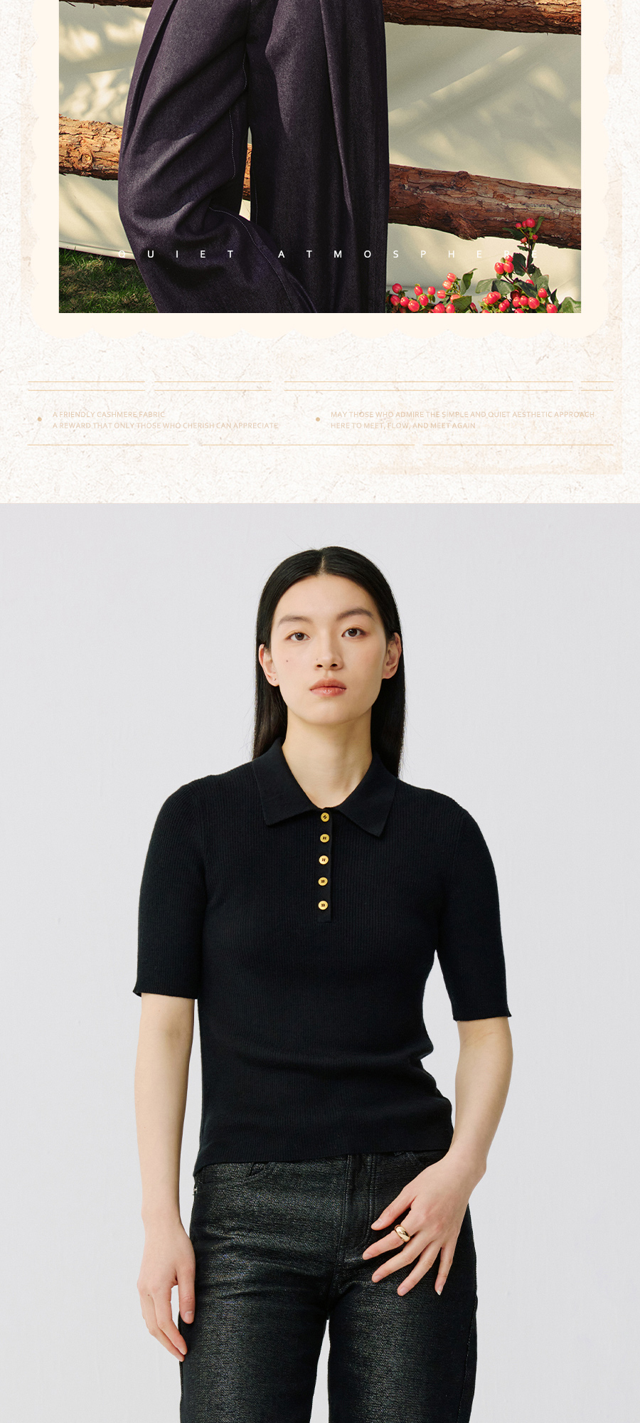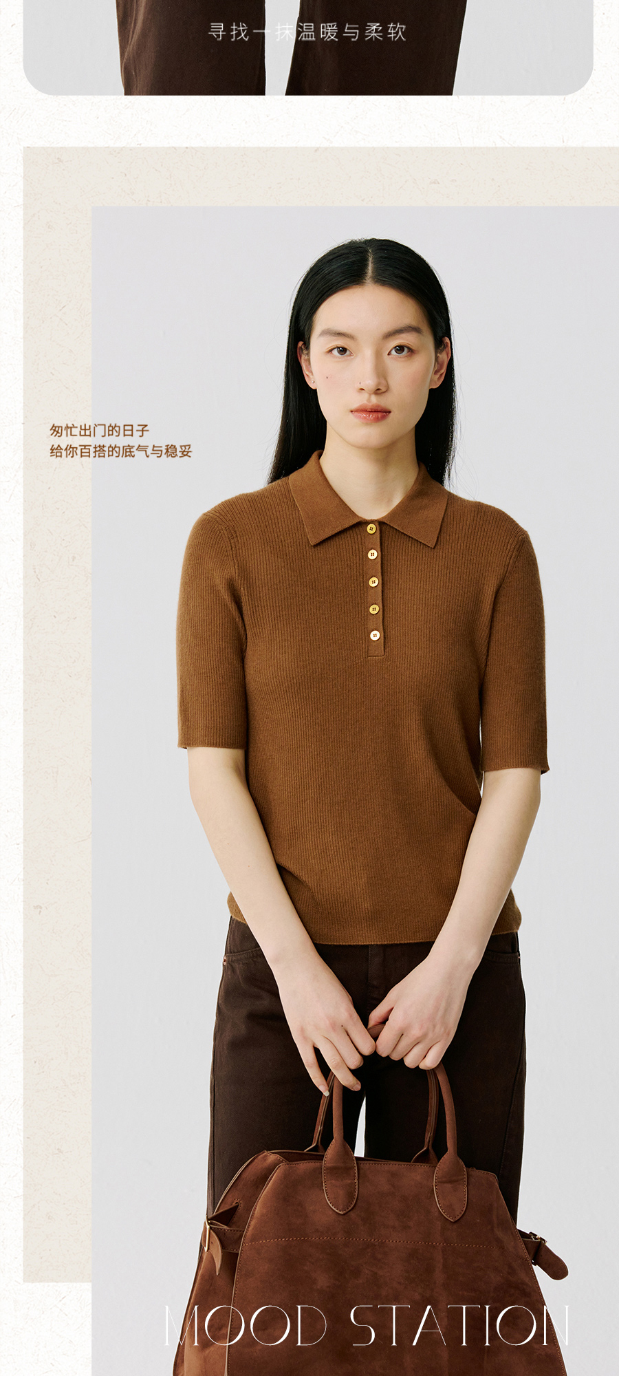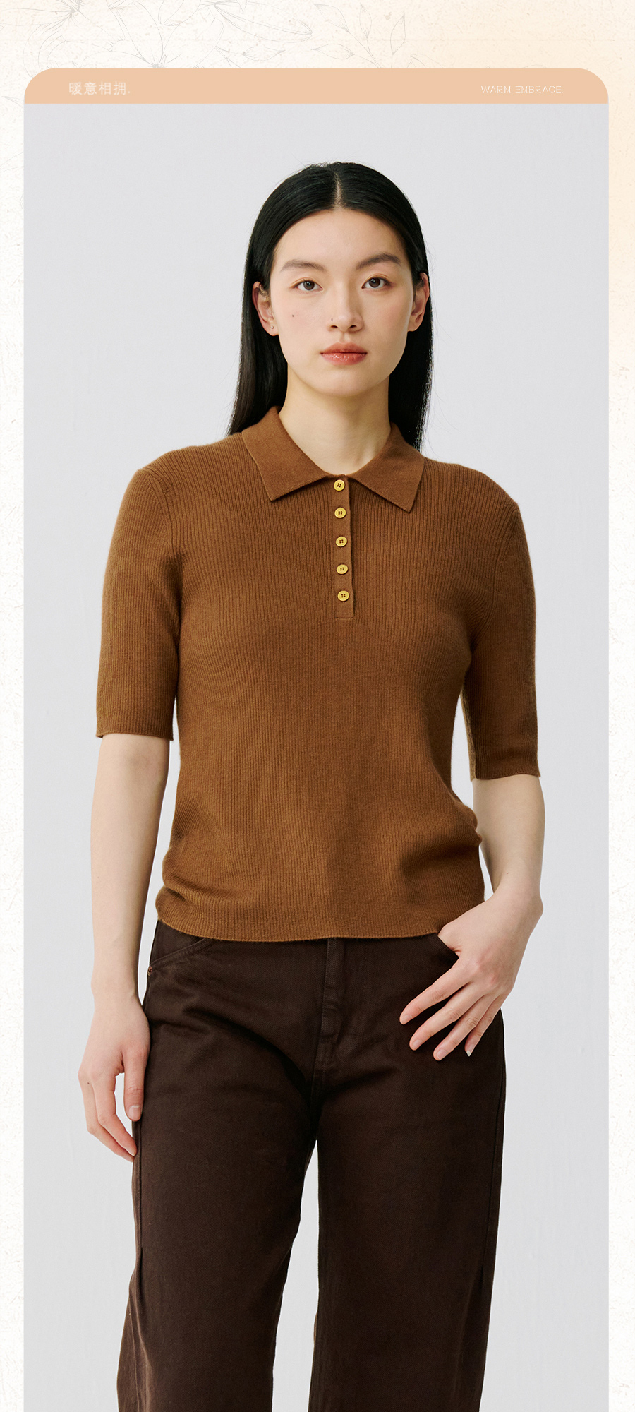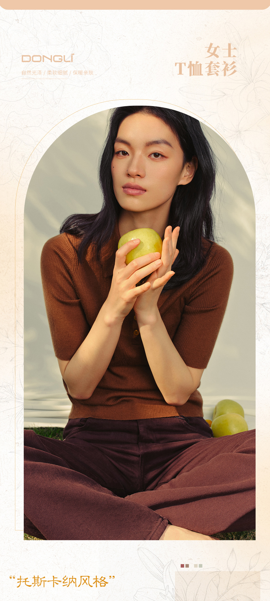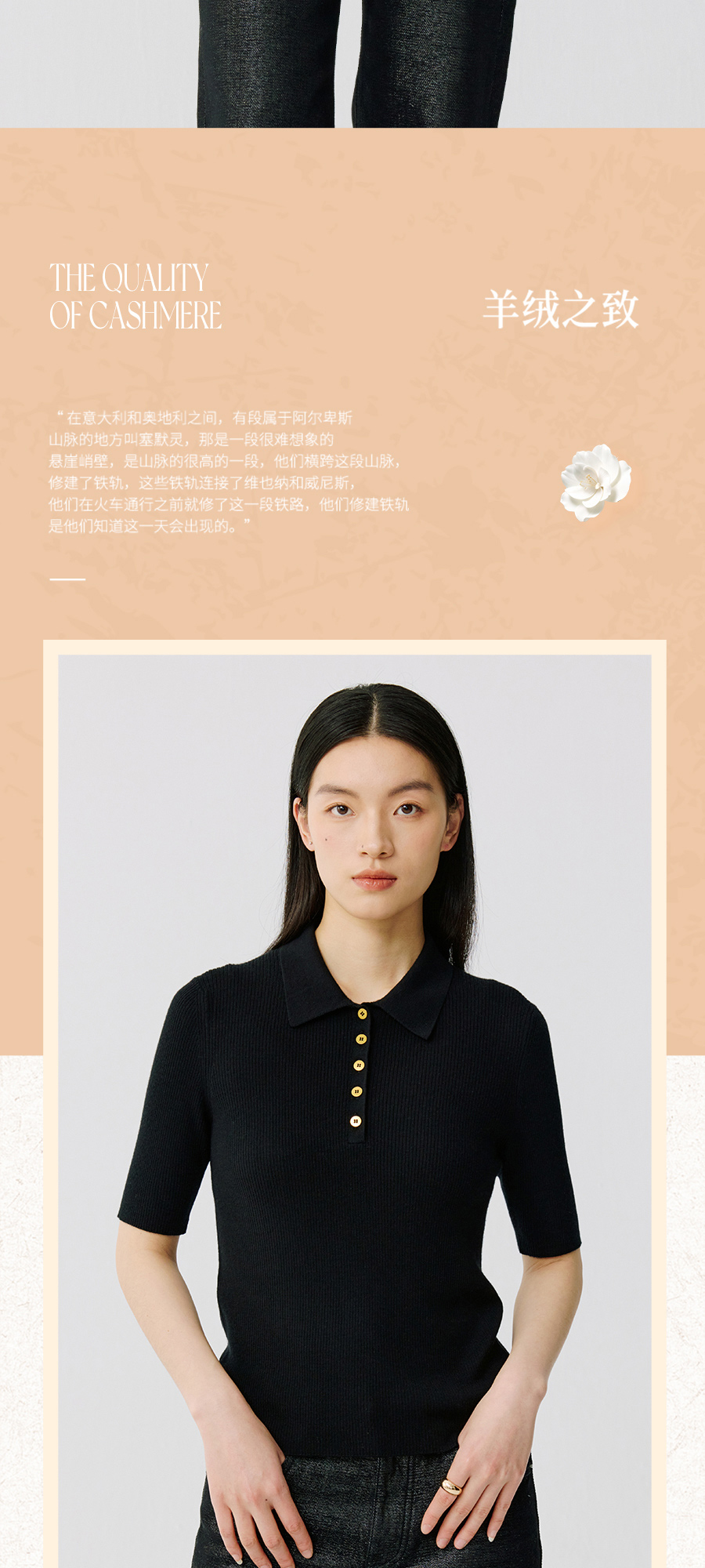 东黎 • 托斯卡纳系列—无尽夏 丝绒女士T恤领五分袖套衫 5017