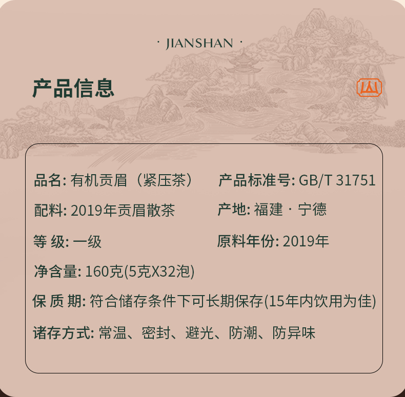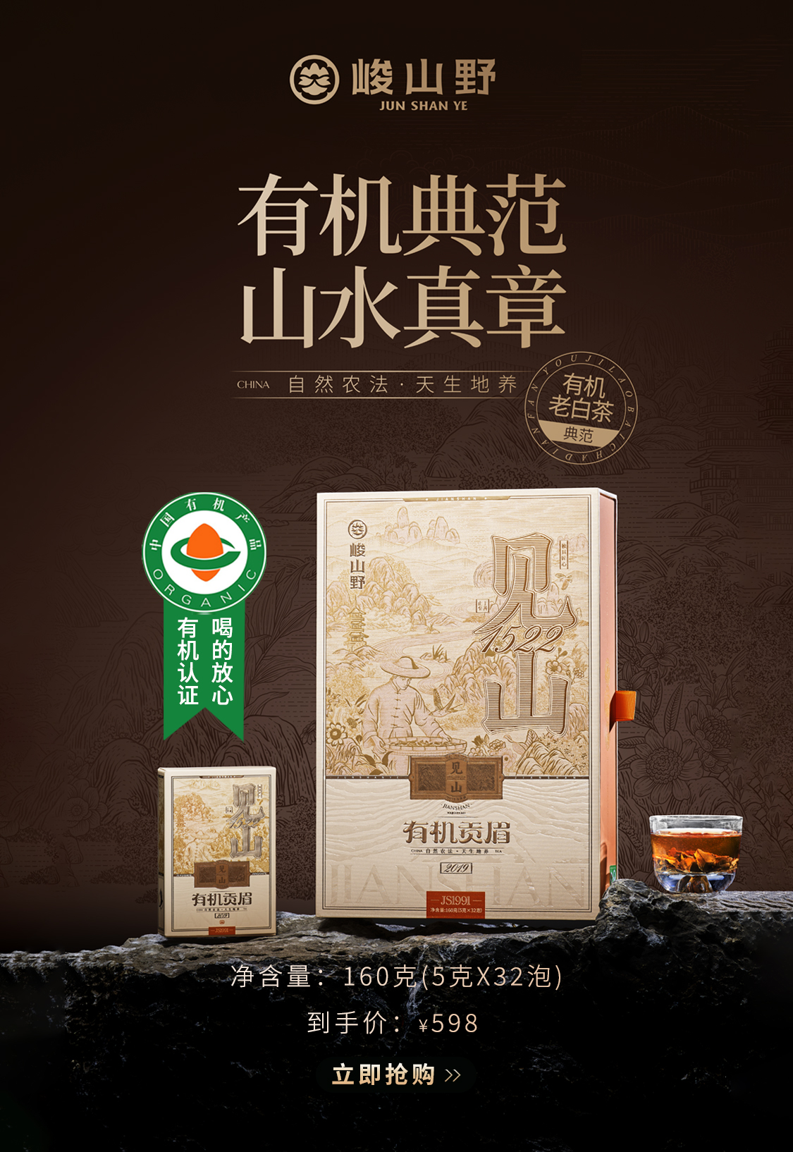 自营(峻山野)-见山·有机贡眉160g/盒
