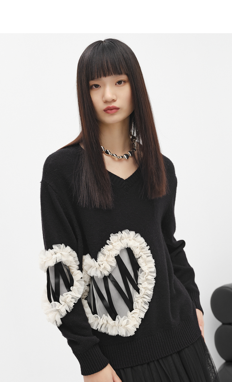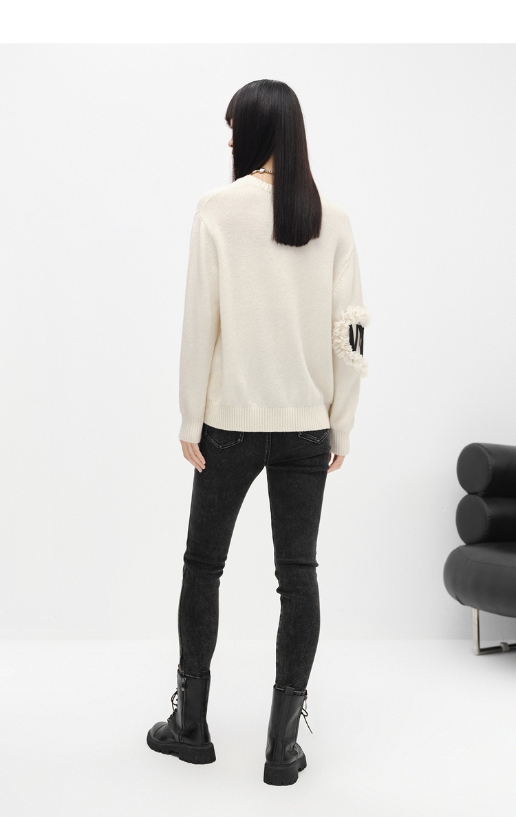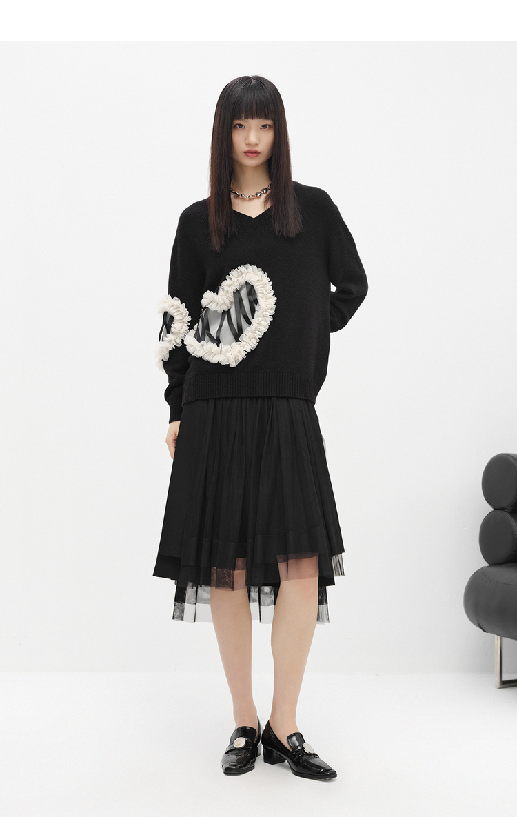 NEELLY纳俪商场同款气质V领针织衫女宽松慵懒感毛衣设计感套头衫N22103A01073
