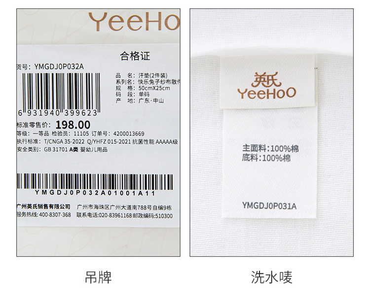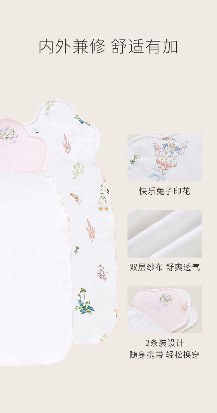 英氏婴儿快乐兔子纱布汗巾女宝宝幼儿园5A抑菌垫背巾YMGDJ0P032A