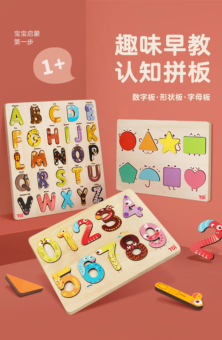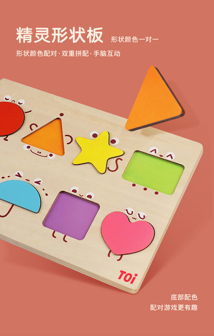 【清仓】TOI形状立体拼图拼板儿童早教木质玩具宝宝1-2-3-4岁男孩女孩