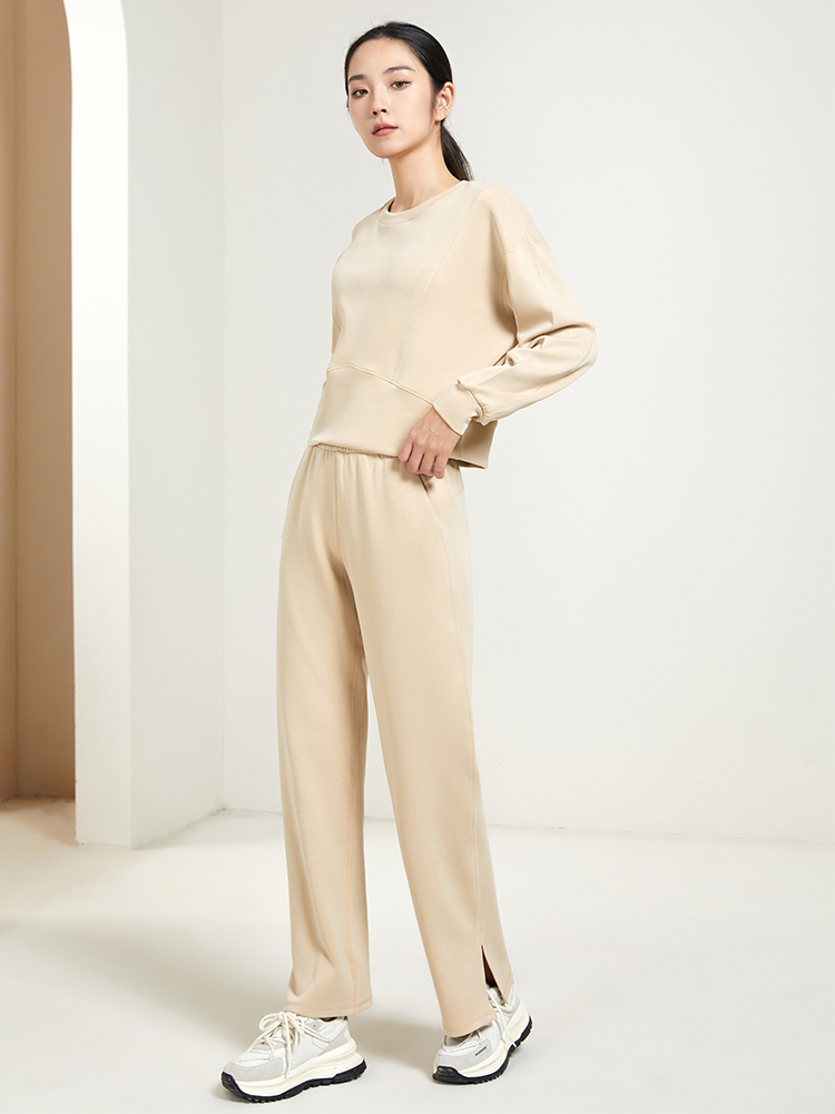 哈瓦塔新款休闲开叉直通套装H321156