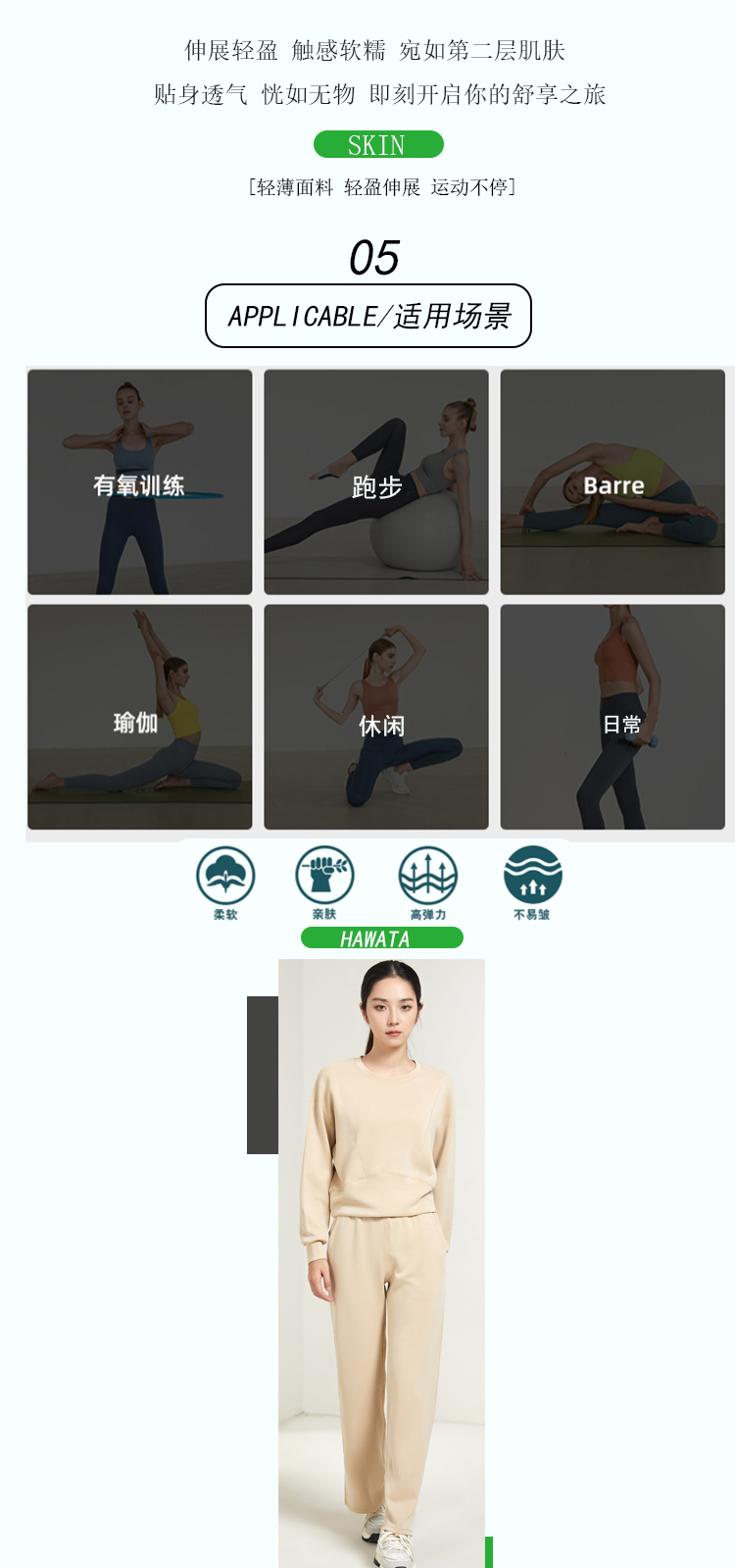 《福利款》哈瓦塔新款暴汗裸感4.0短袖(含胸垫)九分裤H320112