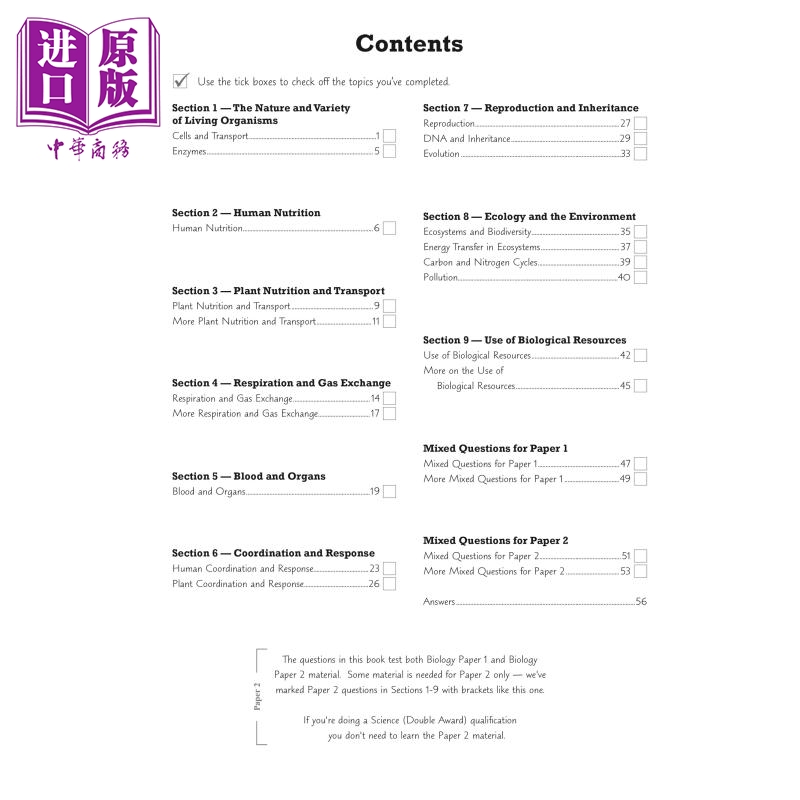 【中商原版】英国CGP New Pearson Edexcel IGCSE Biology Grade 8-9 Exam Practice Workbook (with Answers)