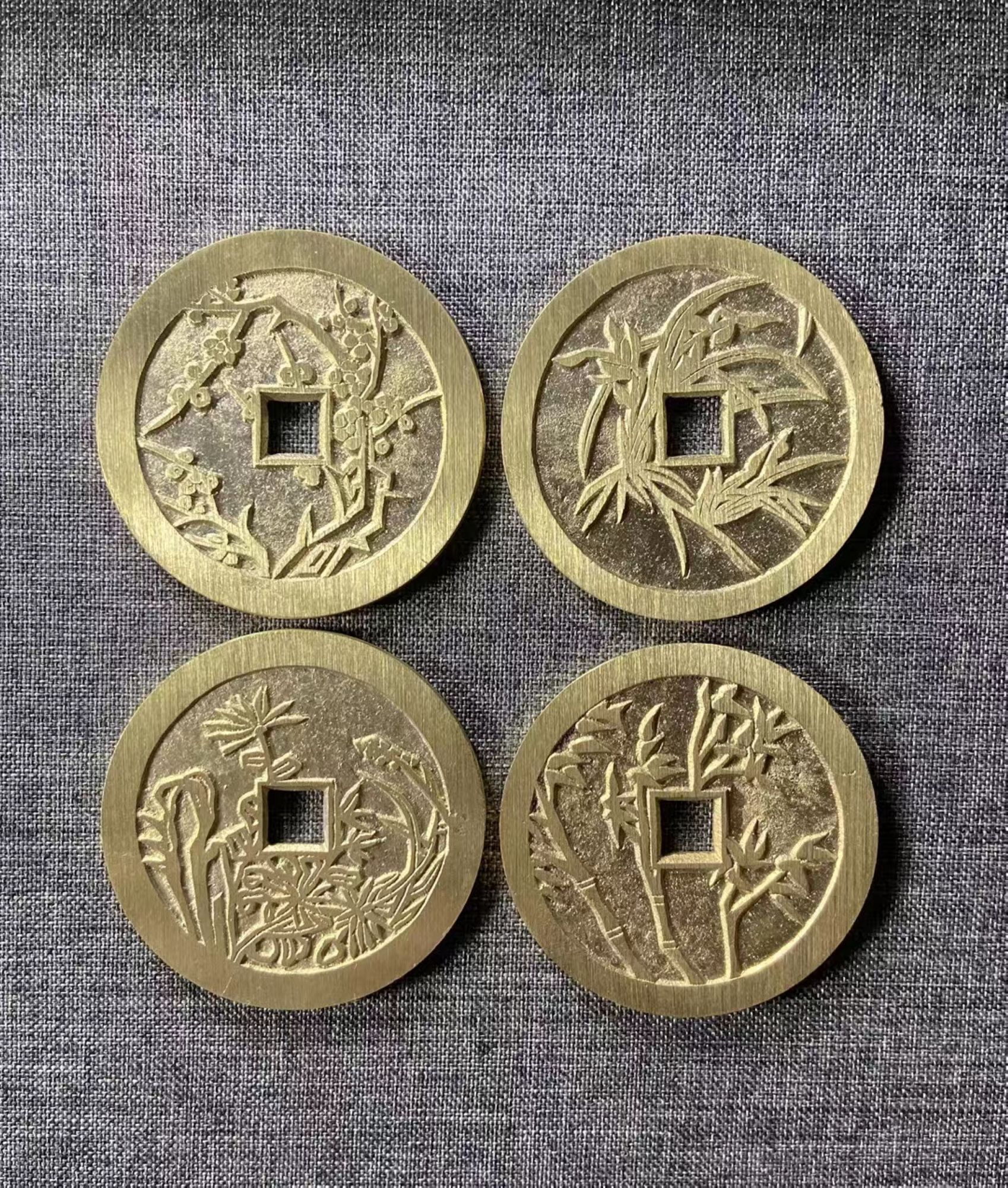 古法翻砂工艺铸造 当代工艺品花钱-川炉套花四枚一套 GY020