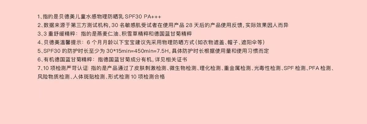 贝德美儿童防晒乳物理防晒专用 SPF30