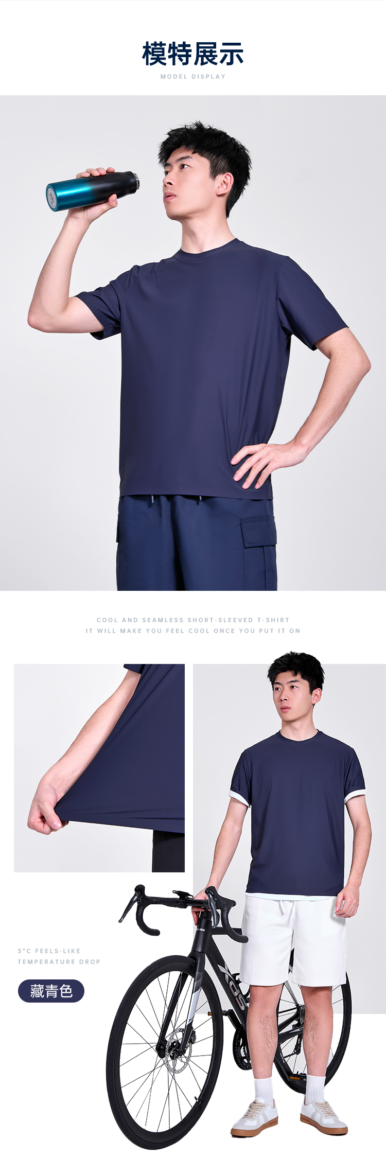 【冰爽酷无痕压胶7A抑菌短袖T恤】凉感通勤圆领短袖T恤运动透气半袖打底衫TZ603