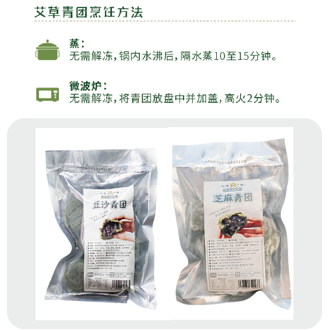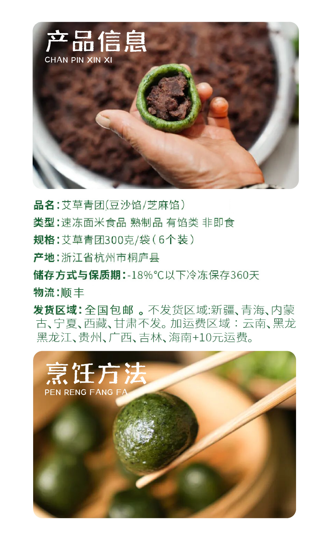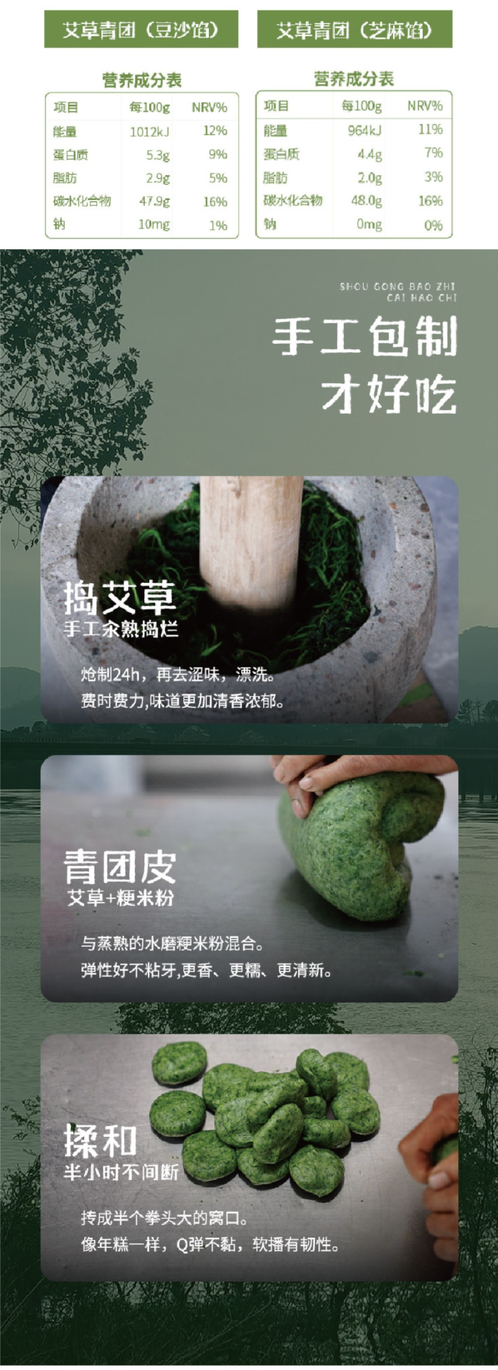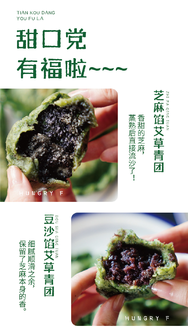 【饥饿F姐·江南手工艾草青团】甜口馅料 手工炒制(6个装)豆沙味/芝麻味青团