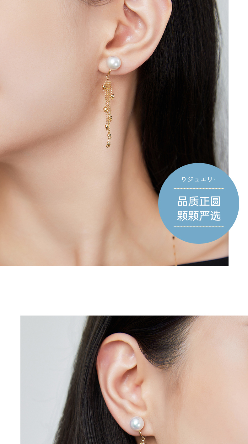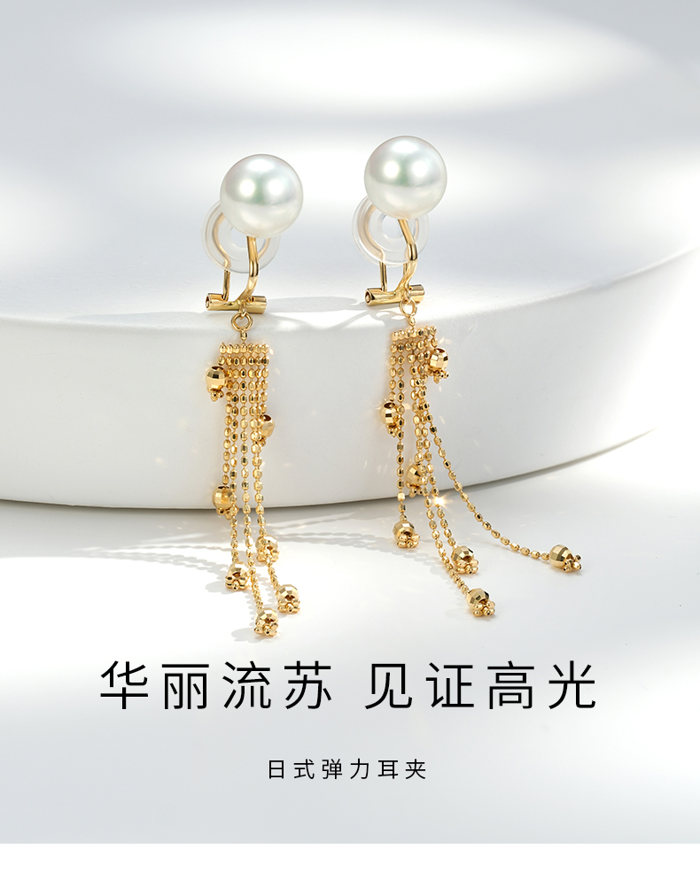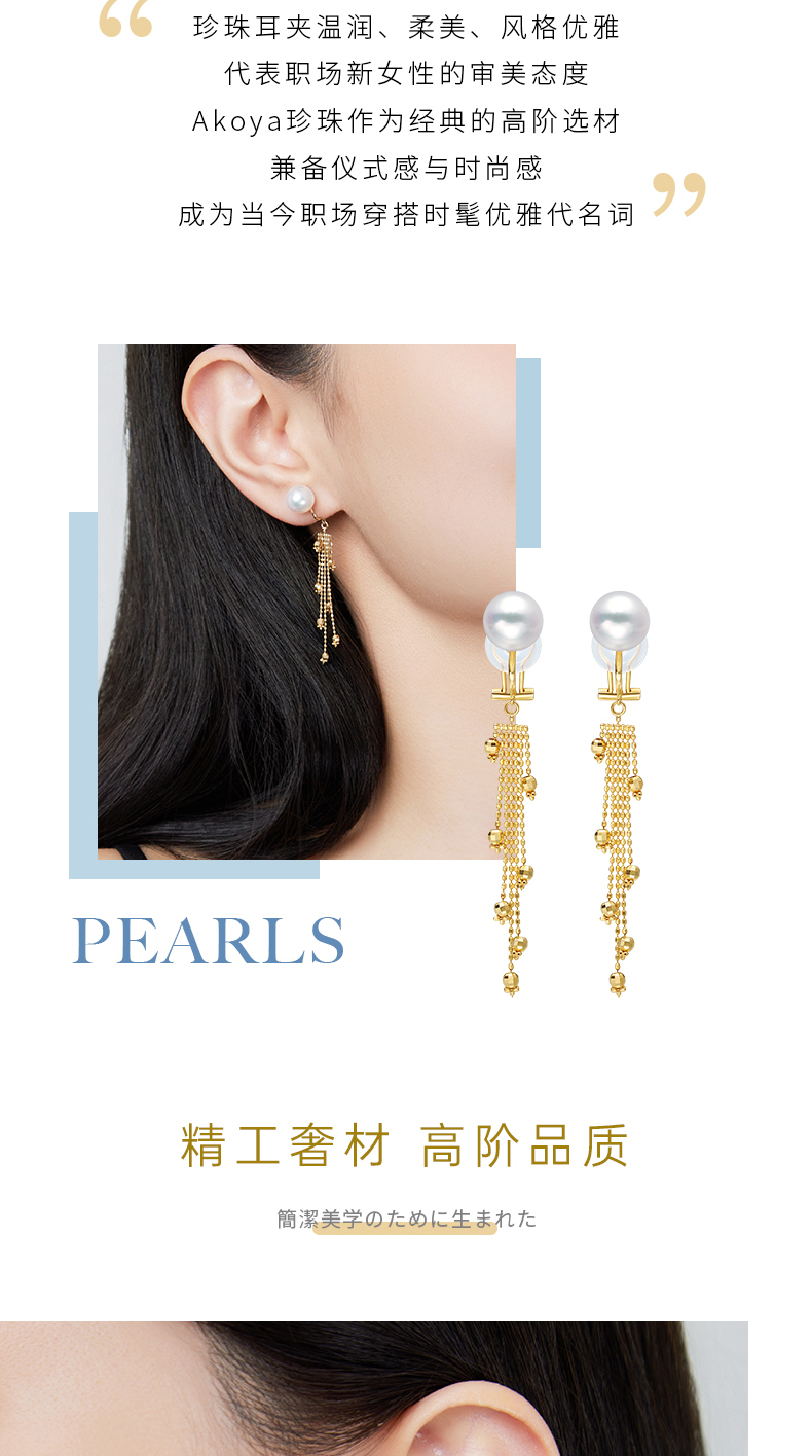 【天猫同款】悦甄 18k金Akoya珍珠耳夹 流苏
