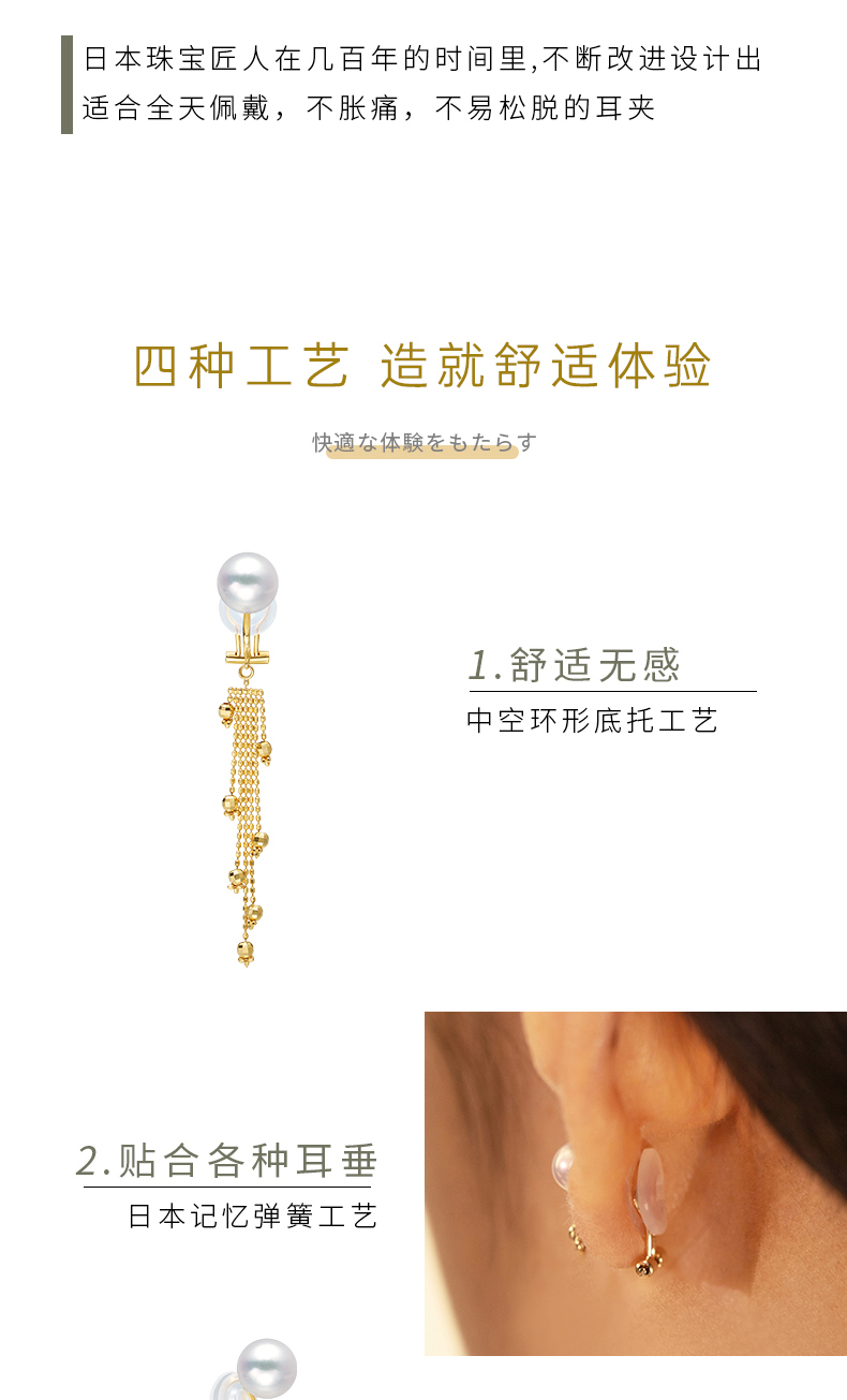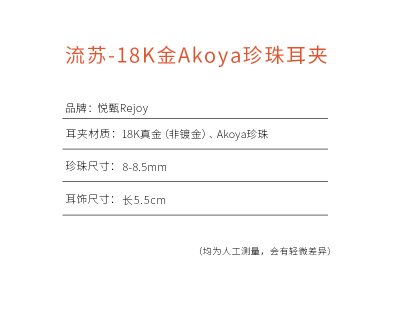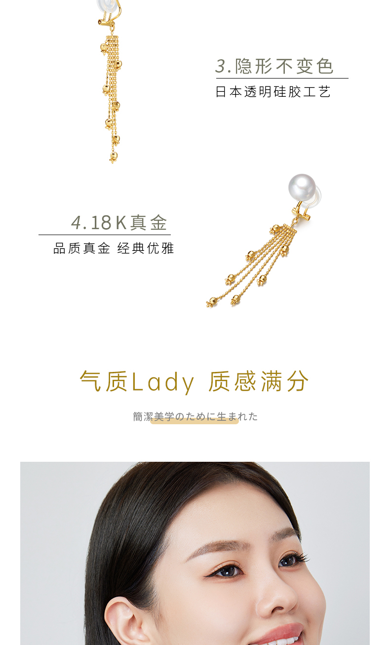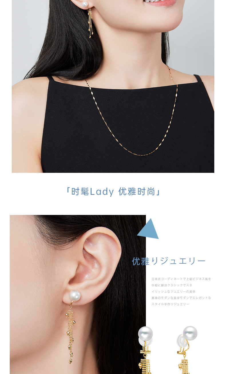 【天猫同款】悦甄 18k金Akoya珍珠耳夹 流苏