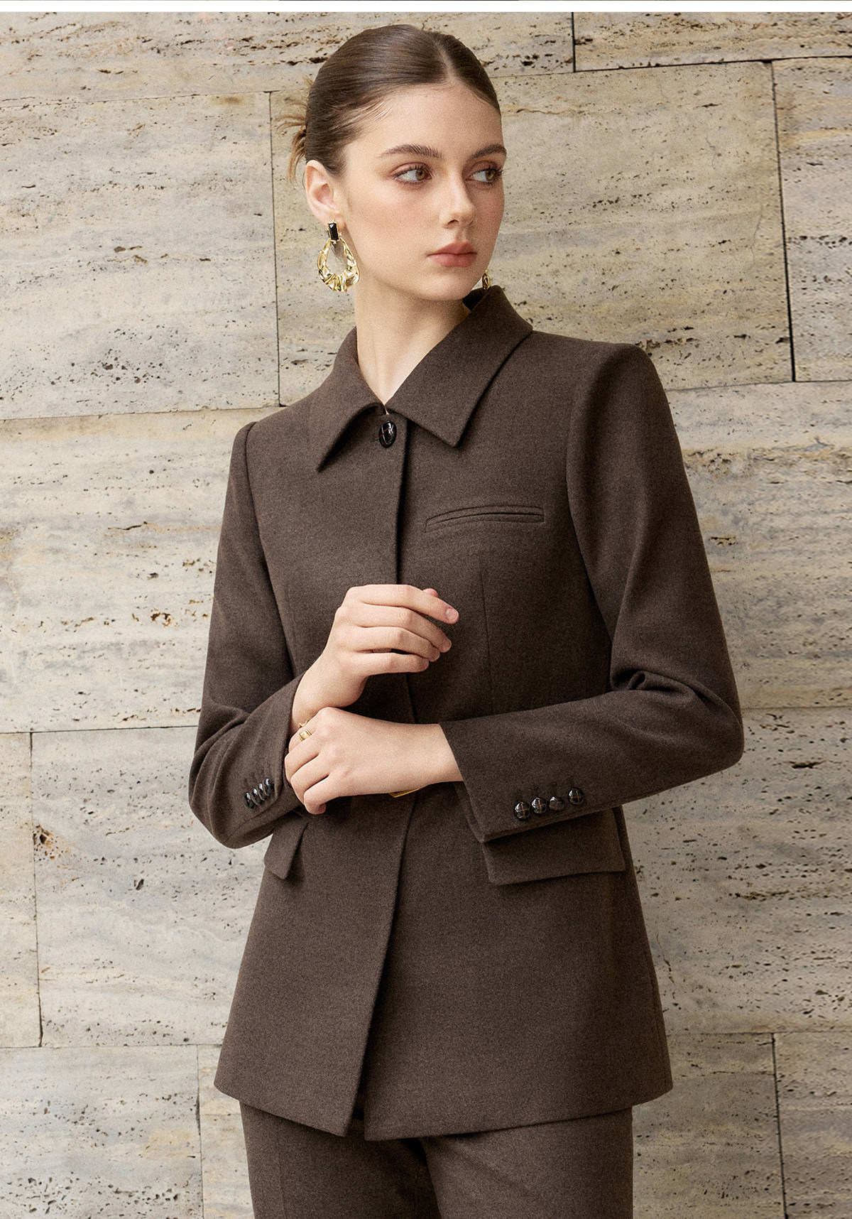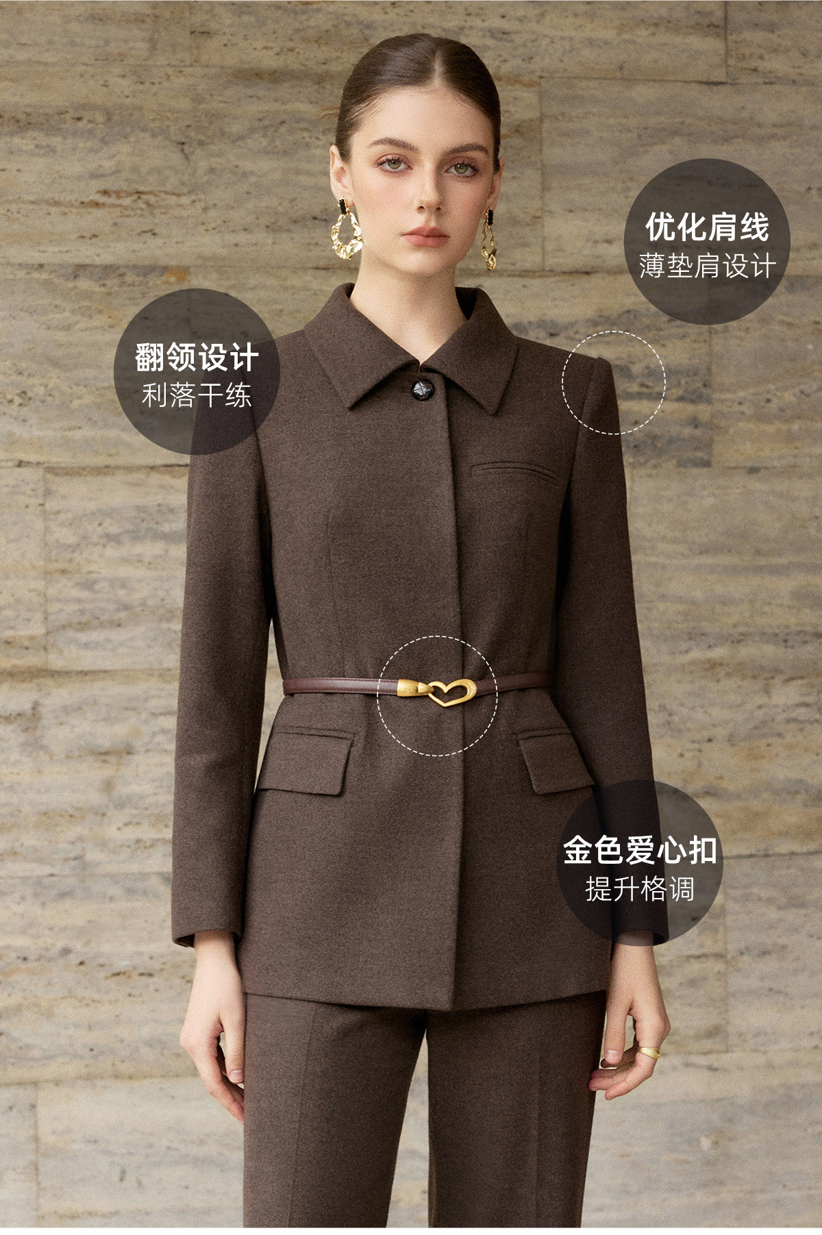 IWY/高级感咖啡色西装套装女通勤知性极简风职业装两件套工作服25CP896