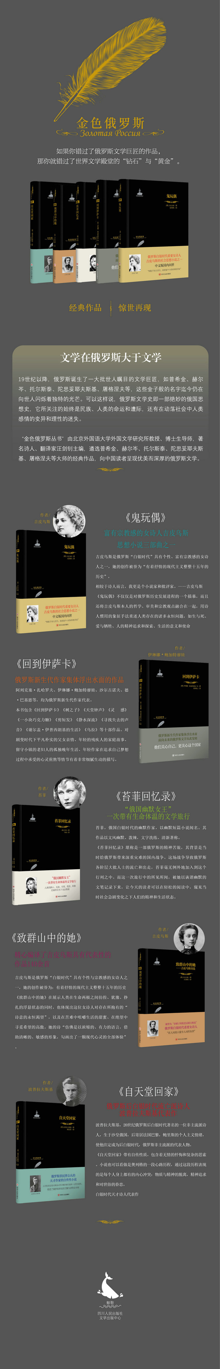 19世纪以降,俄罗斯诞生了一大批*的文学巨匠,如普希金、赫尔岑、托尔斯泰、陀思妥耶夫斯基、屠格涅夫等,这些金子般的名字迄今仍在向世人闪烁着独特的光芒。然而,作为一座富矿,俄罗斯文学在我国所显露的仅是冰山一角,大量的宝藏仍在我们有限的视阈之外。“金色俄罗斯丛书”进一步挖掘那些静卧在俄罗斯文化沃土中的金锭,向中国读者展示赫尔岑的人性,丘特切夫的智慧,费特的唯美,苔菲的幽默,什克洛夫斯基的精致,波普拉夫斯基的超现实,哈尔姆斯的怪诞……可以这样说,俄罗斯文学史即一部绝妙的俄国思想史,它所关注的始终是民族、人类的命运和遭际,还有在动荡社会中人类感情的变异和理性的迷失。