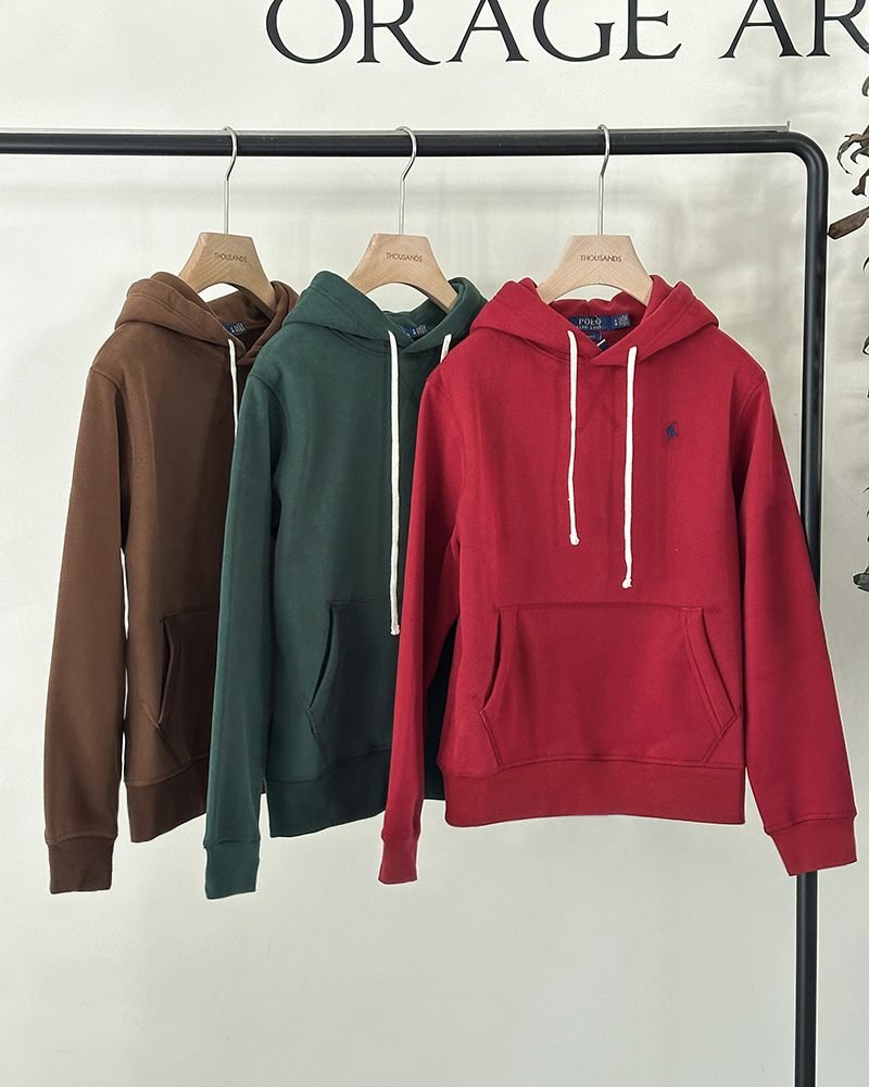 单品包邮现货 THS-限时 RL马球家 情侣款 休闲卫衣内里加绒连帽上衣 3色 QI145