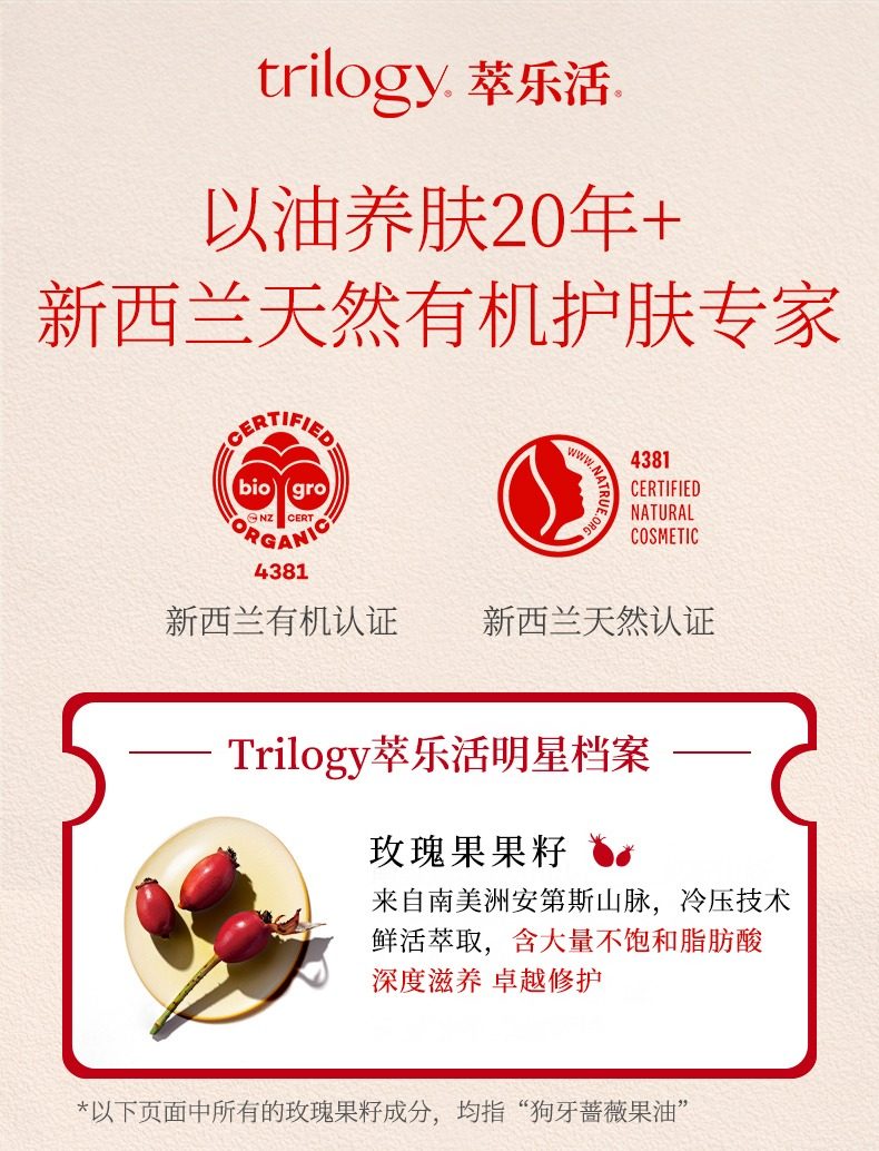 trilogy玫瑰果油萃乐活经典精油卒澳洲萃乐精华油粹趣乐活翠乐活