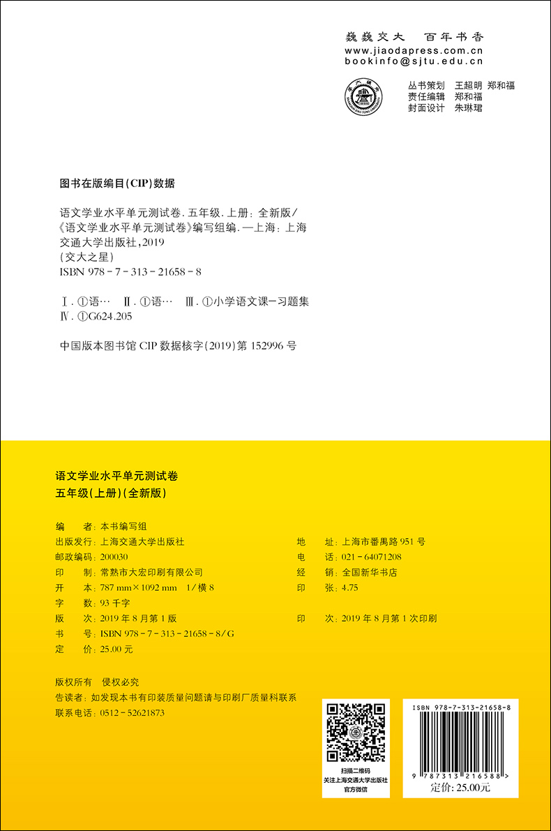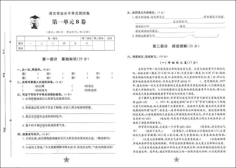 交大之星 学业水平单元测试卷 部编版 语文 五年级第一学期/5年级上 上海小学教辅人教统编版教材同步配套课后单元辅导测试练习卷