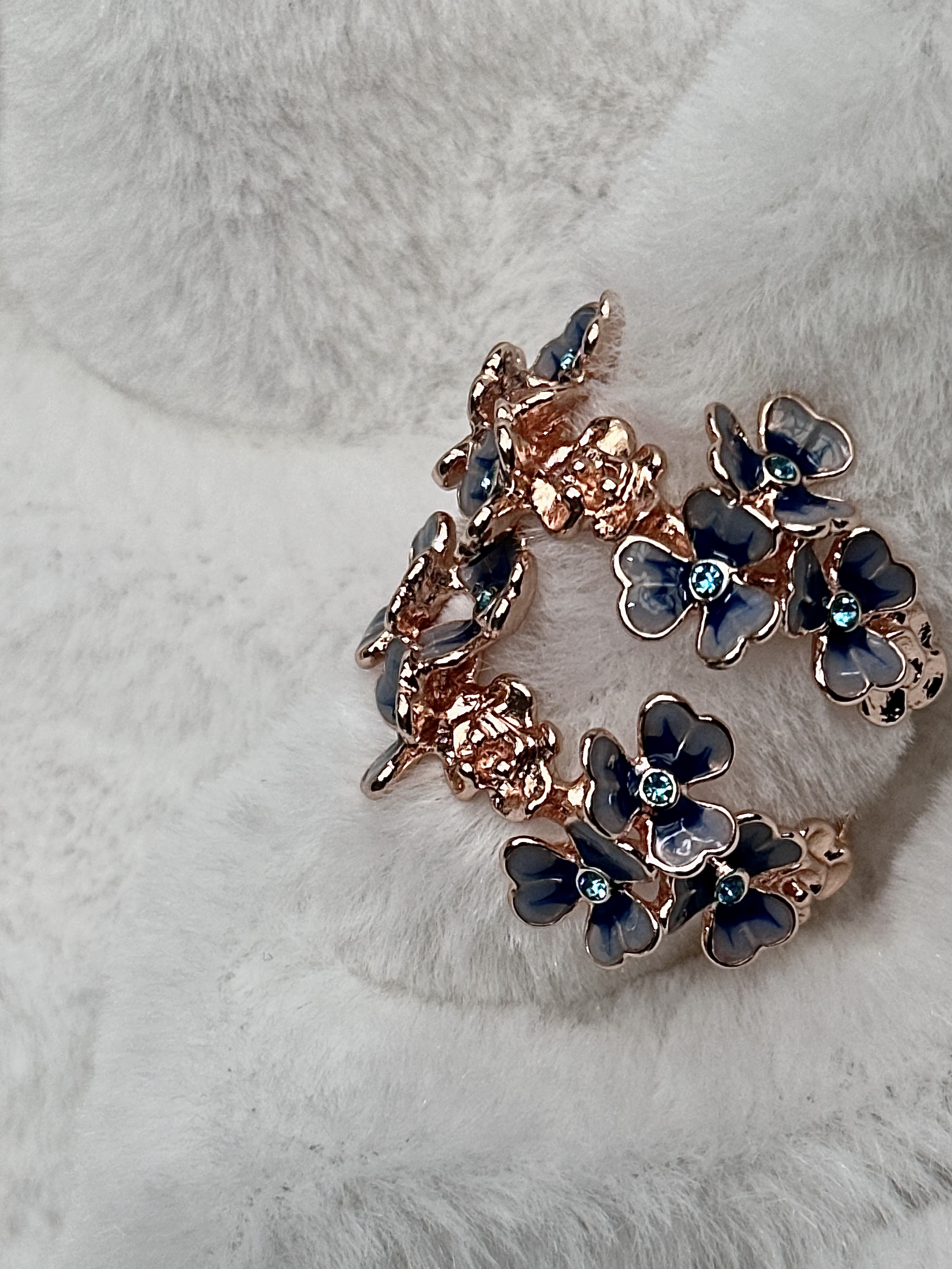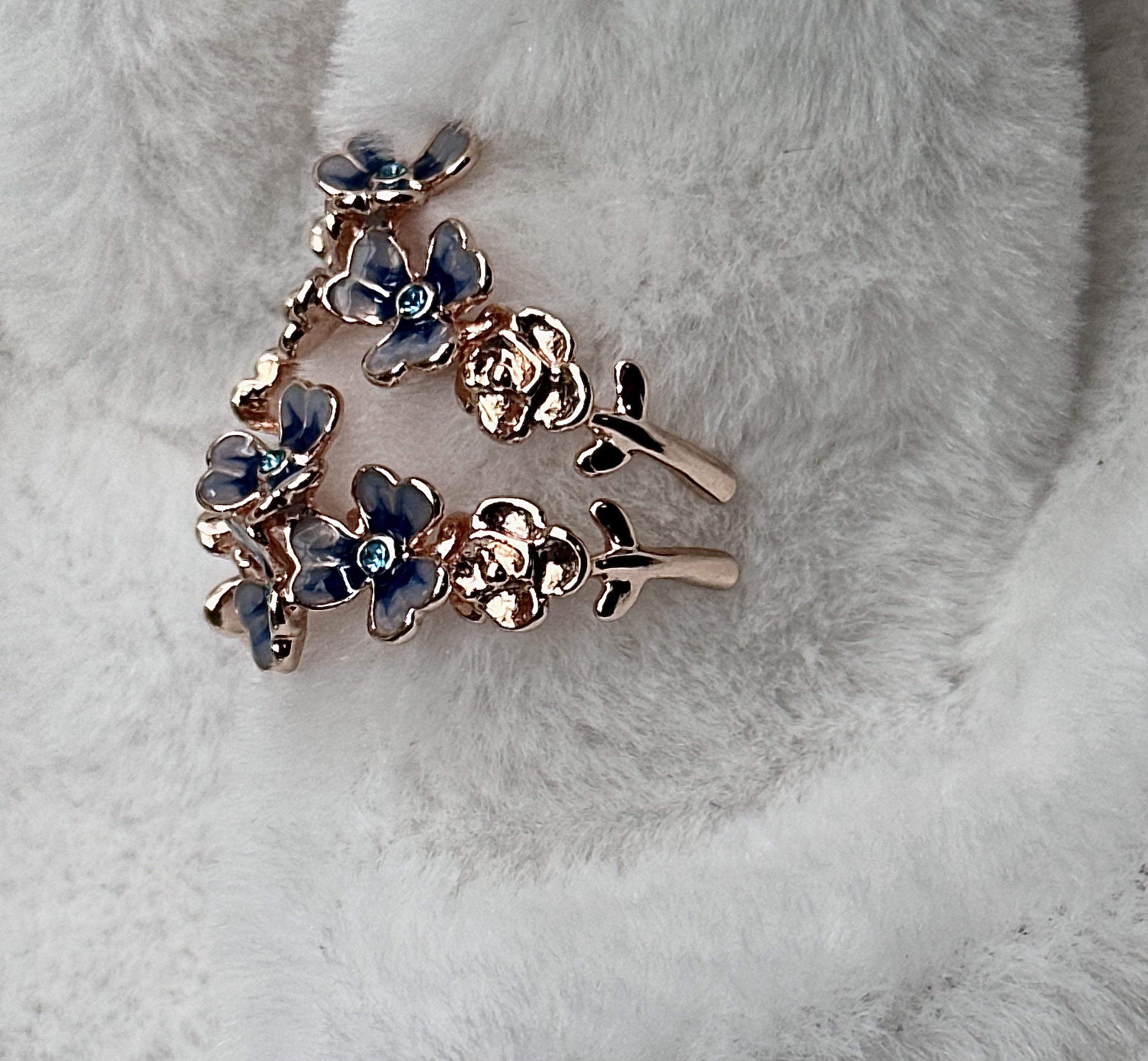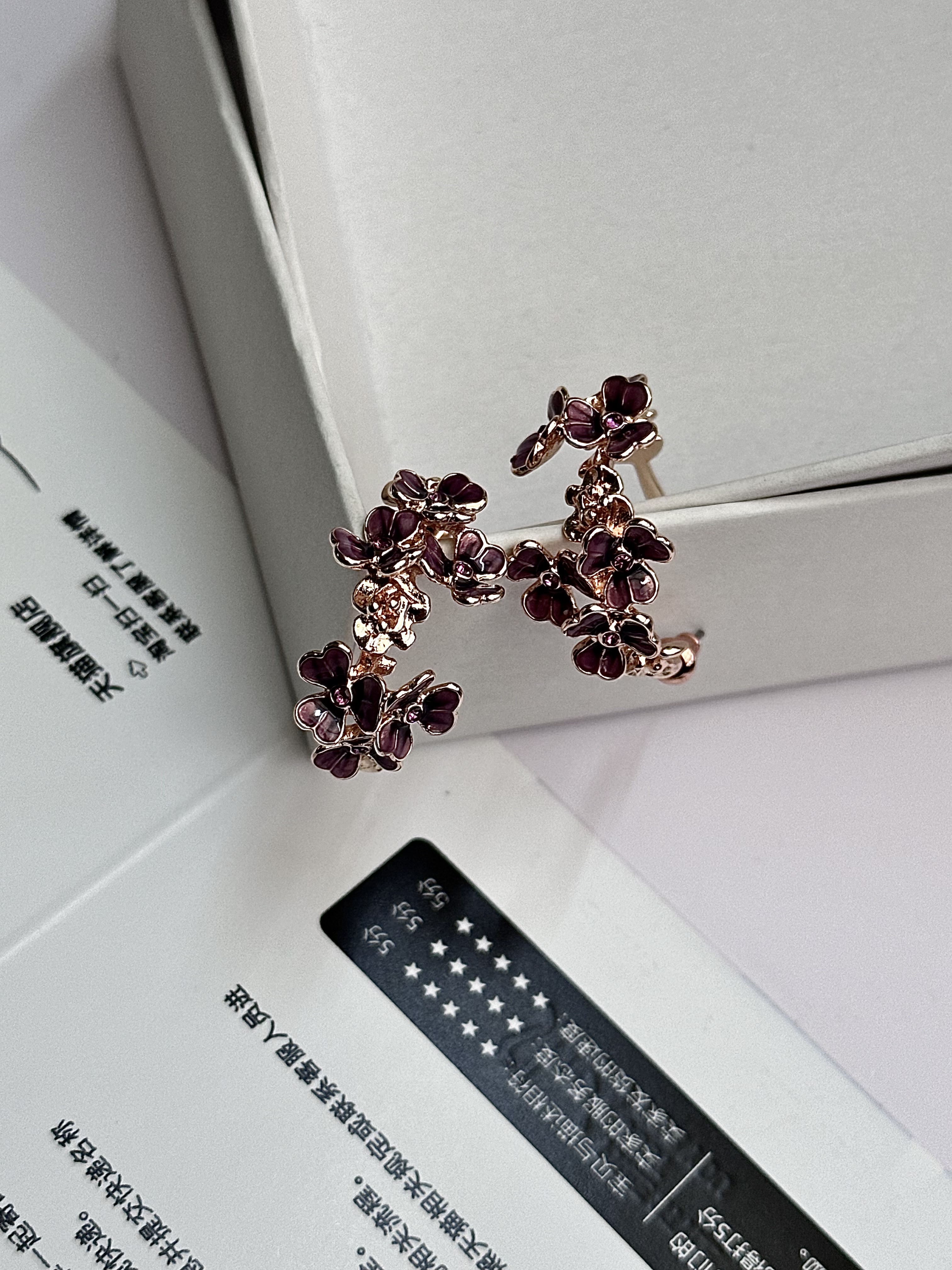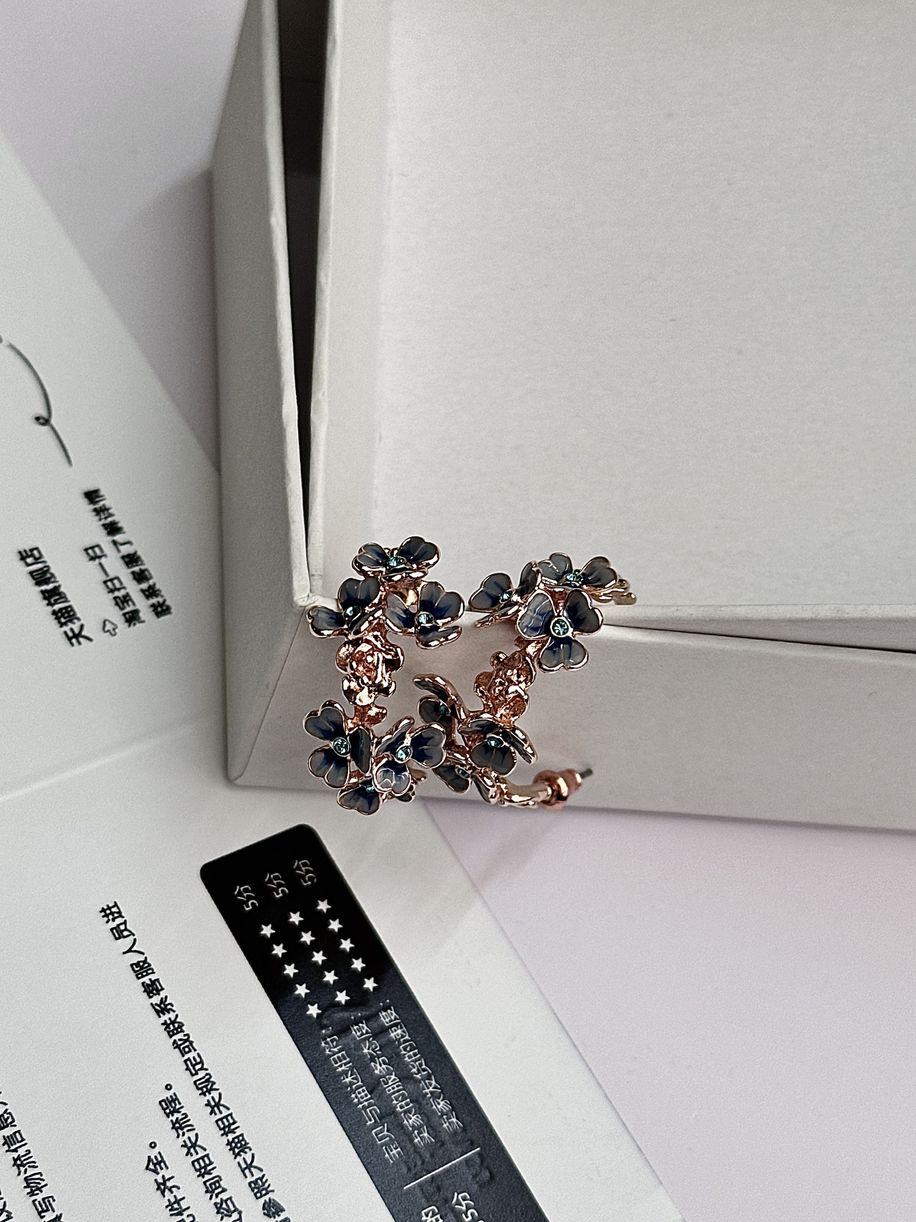 每一朵鸢尾花都采用纯手工滴油工艺,色彩饱满均匀,边缘干净利落,没有溢色、毛边,蓝白渐变与紫调晕色层次丰富,质感通透又高级。花瓣边缘微光下闪着细碎光泽,不张扬却很精致。花型立体雕刻,脉络清晰,花瓣弧度自然灵动,不是扁平廉价款,立体廓形一眼显贵,细节处尽显匠心做工。一体铸造工艺,花瓣、枝叶流畅衔接,结构稳固无接缝,兼顾艺术张力与佩戴耐久性。