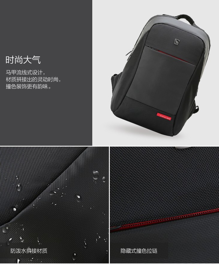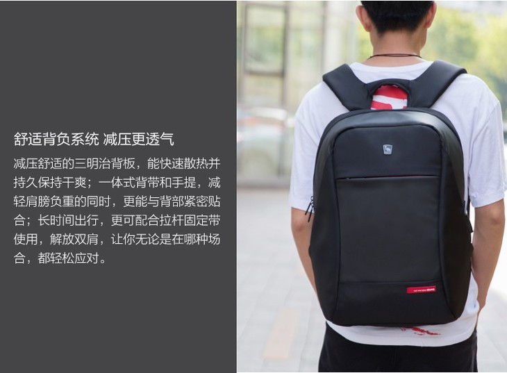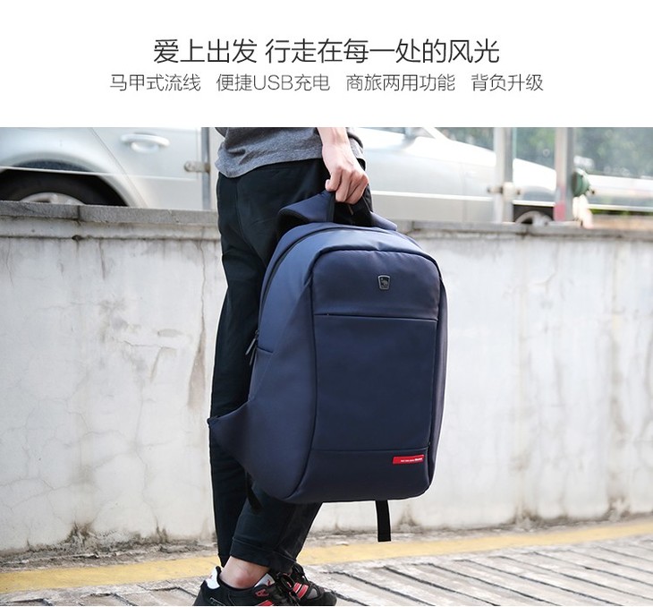 爱华仕 双肩包男士商务大容量SUB充电接口背包 OCB4618黑色