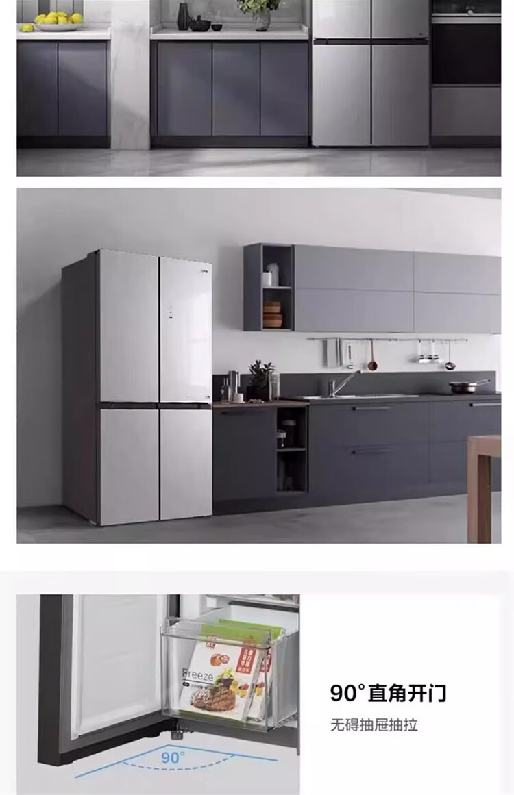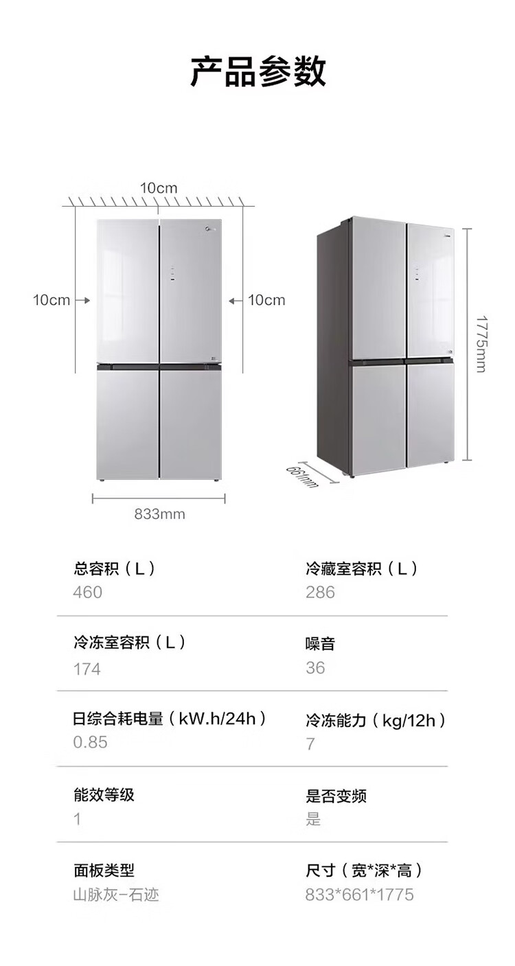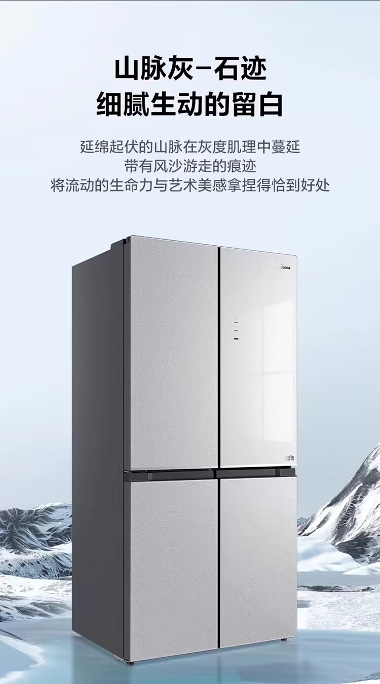 Midea/美的 BCD-460WSGPM十字四门家用大容量风冷无霜电冰箱山脉灰-石迹