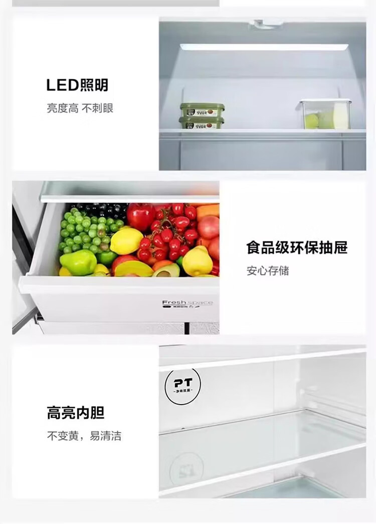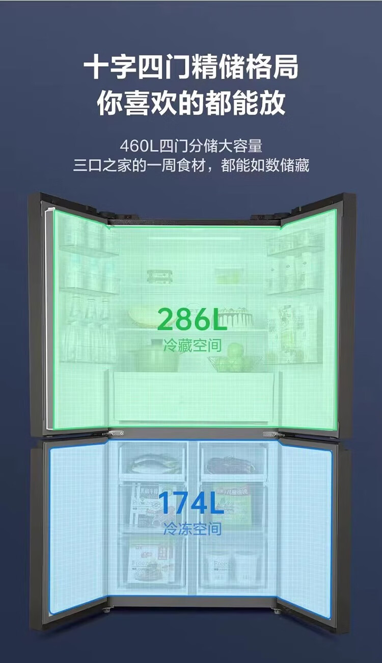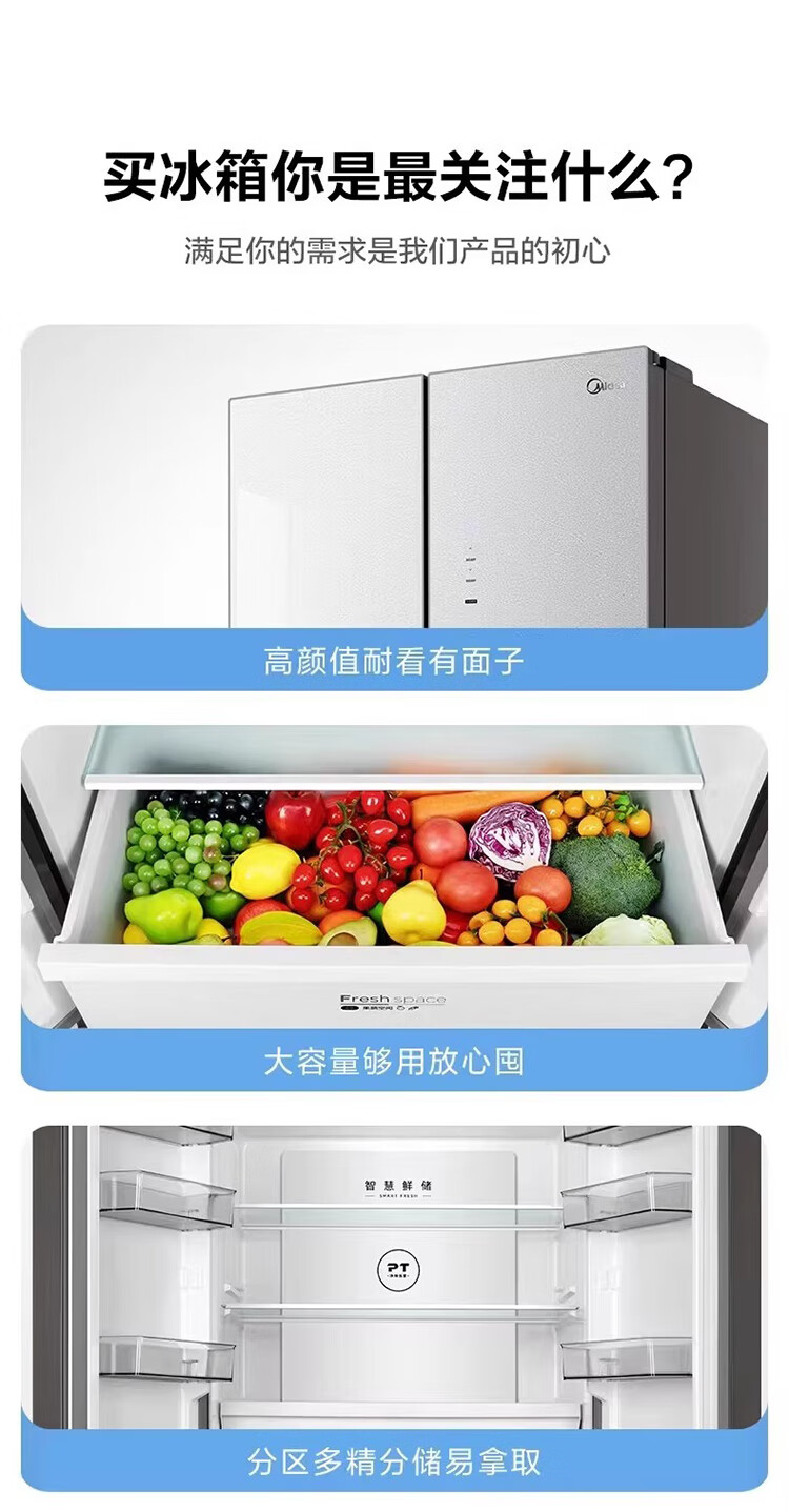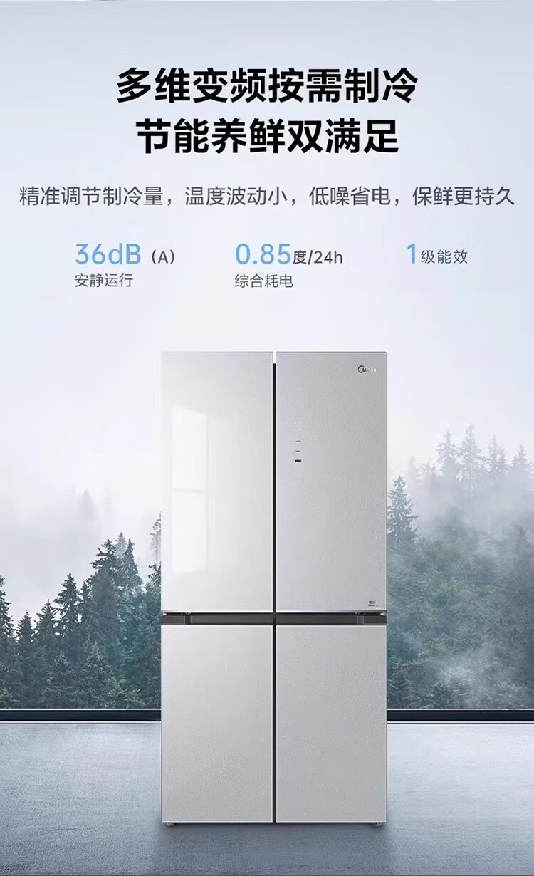 Midea/美的 BCD-460WSGPM十字四门家用大容量风冷无霜电冰箱山脉灰-石迹