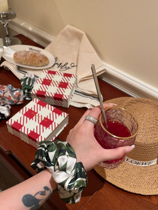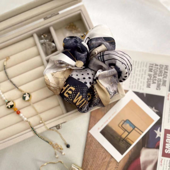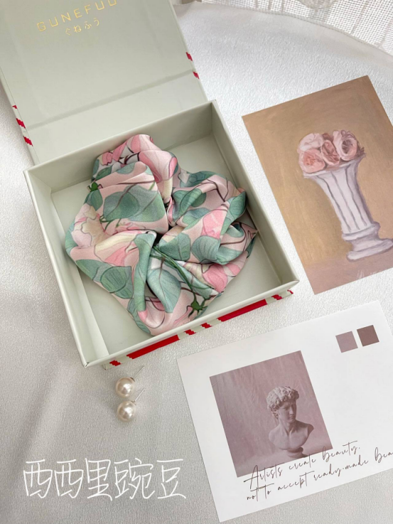 扎在头上的时候整体造型是轻松灵动的,然后对头发也是特别友好,不会过度摩擦伤头发!