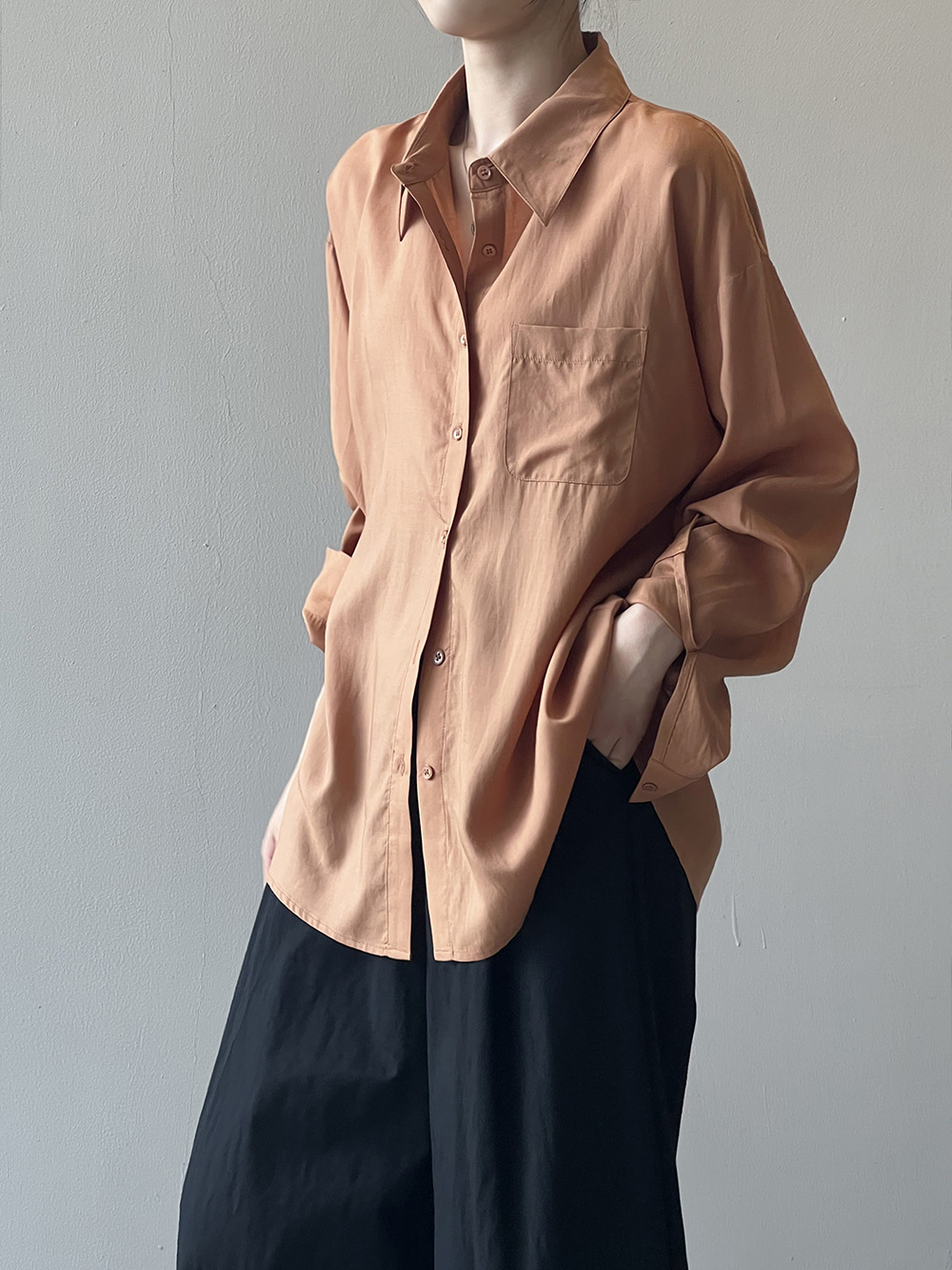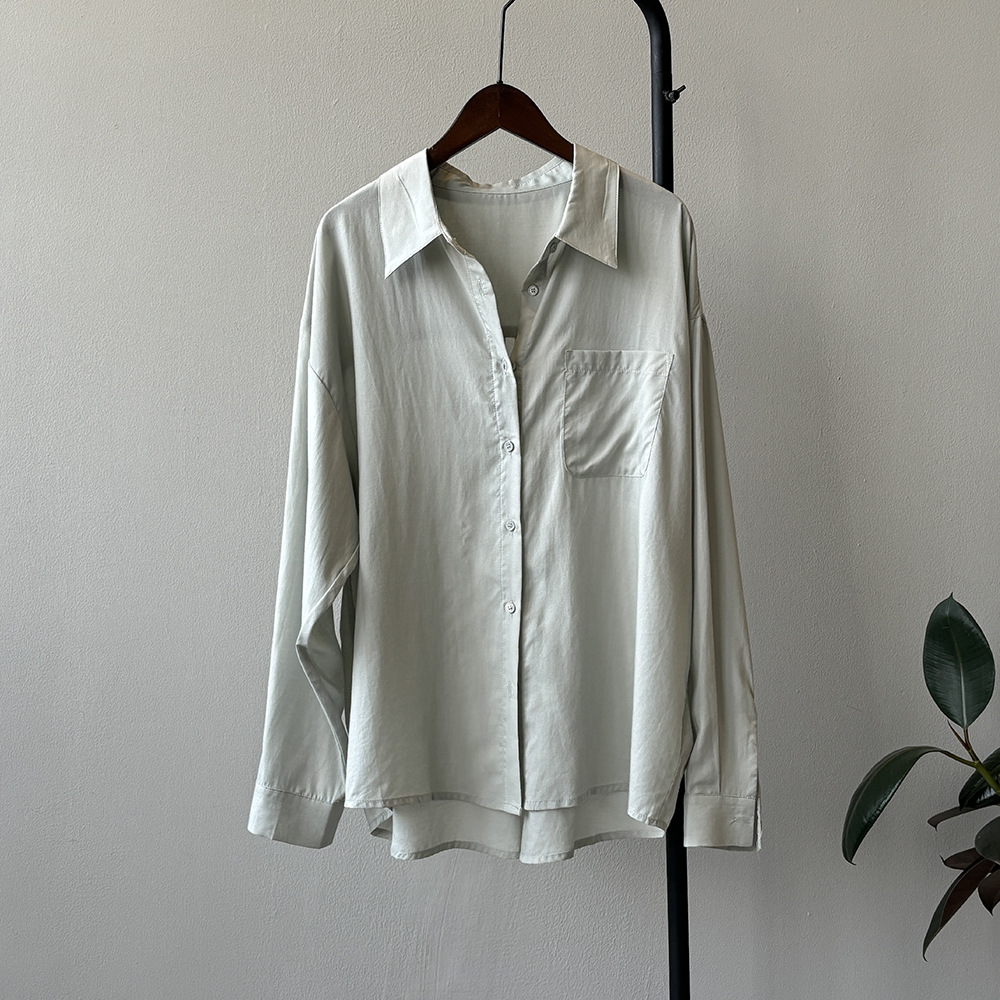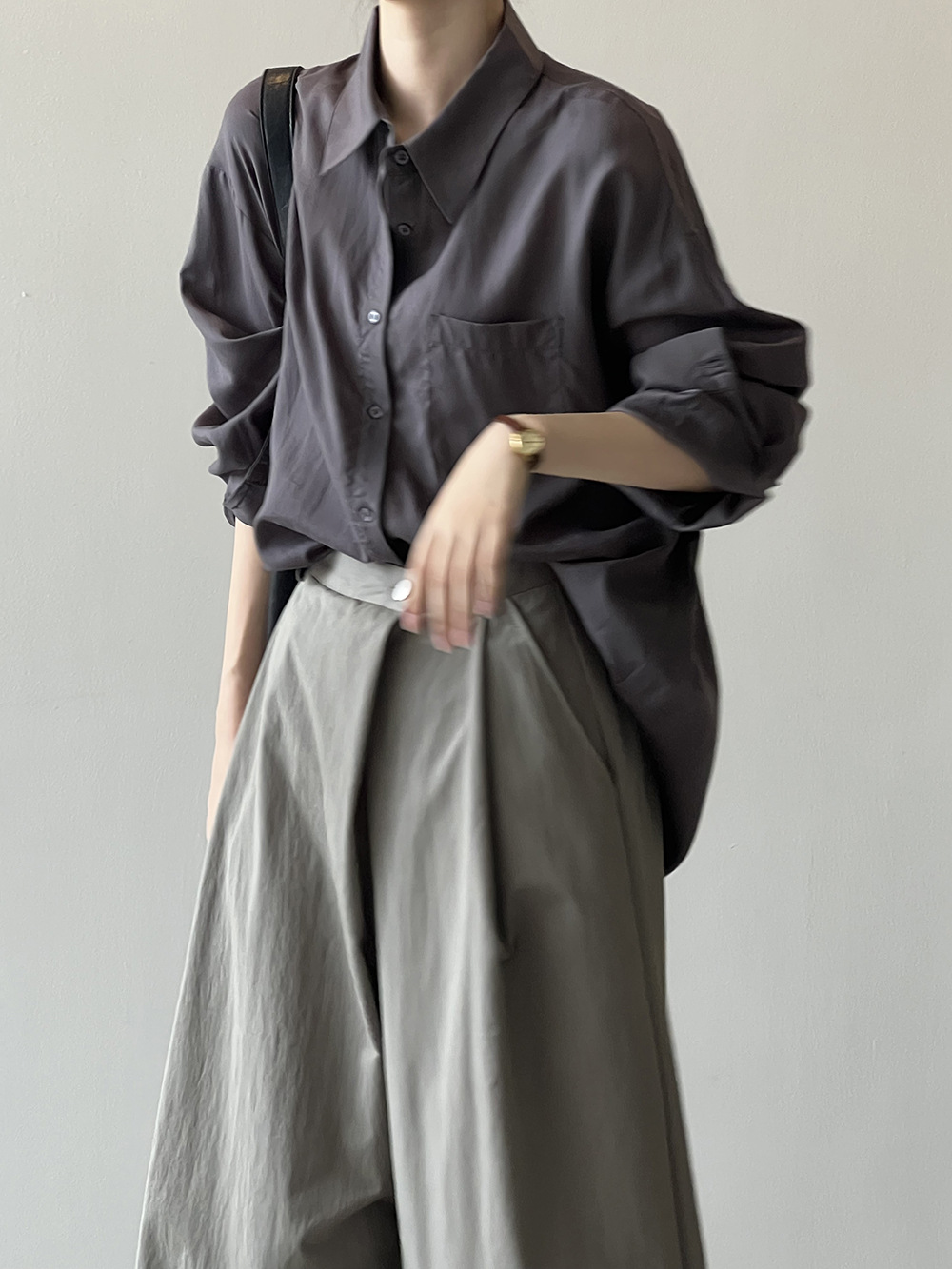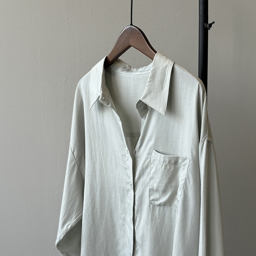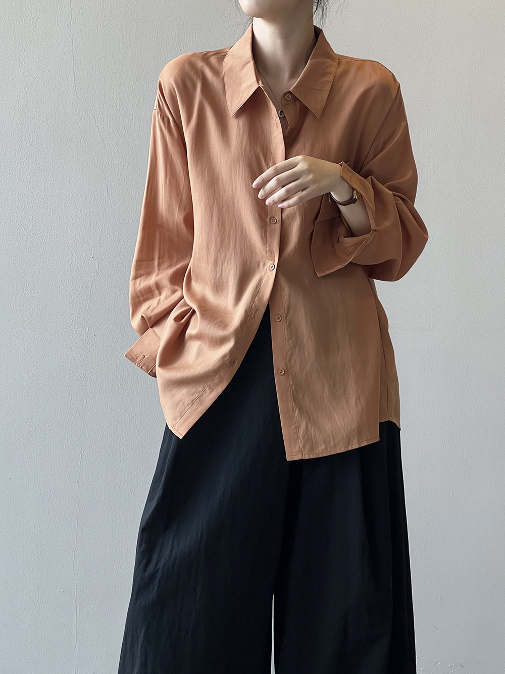 【专柜大牌品质】春夏天丝麻简约衬衫 设计感宽松叠穿衬衣82121
