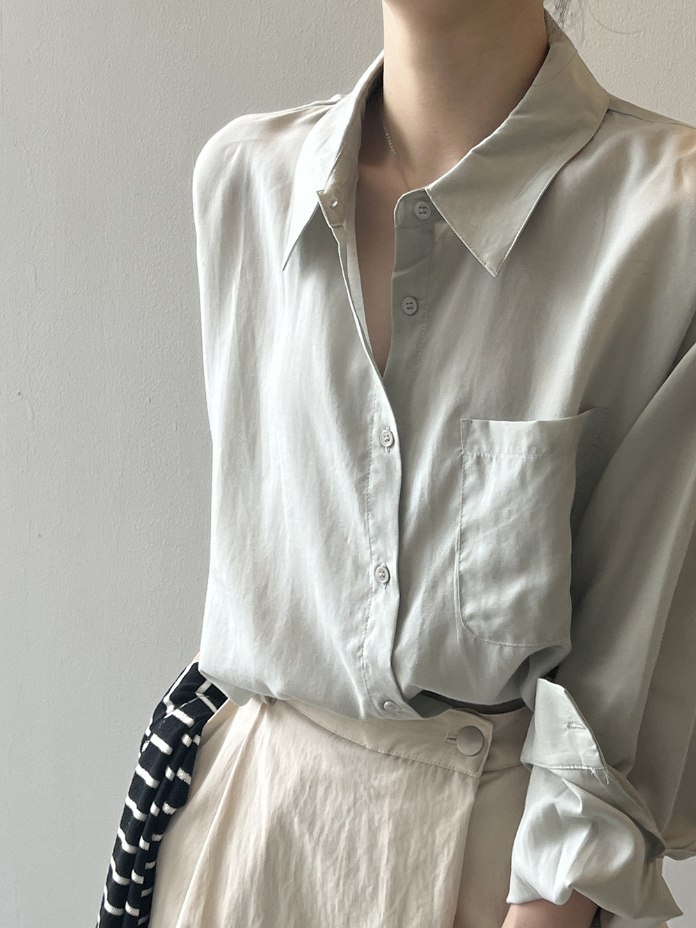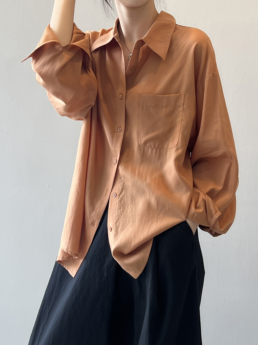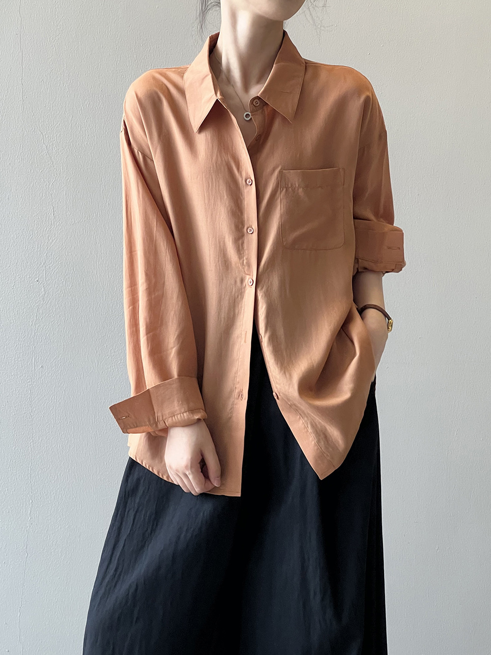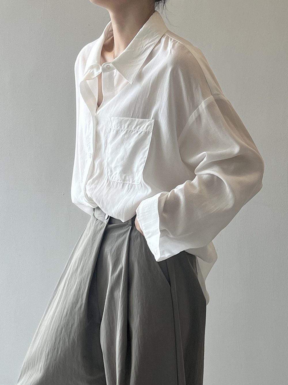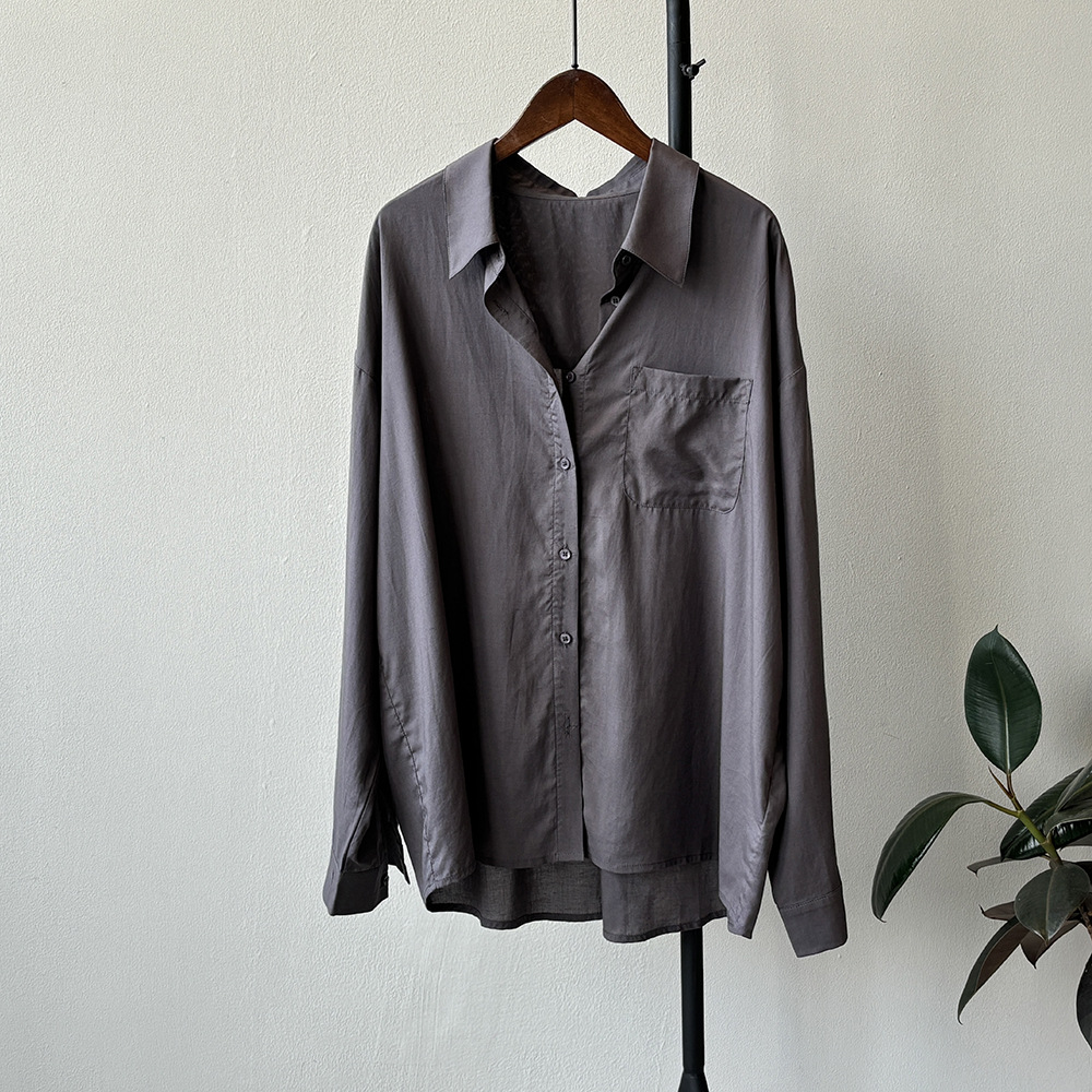 【专柜大牌品质】春夏天丝麻简约衬衫 设计感宽松叠穿衬衣82121