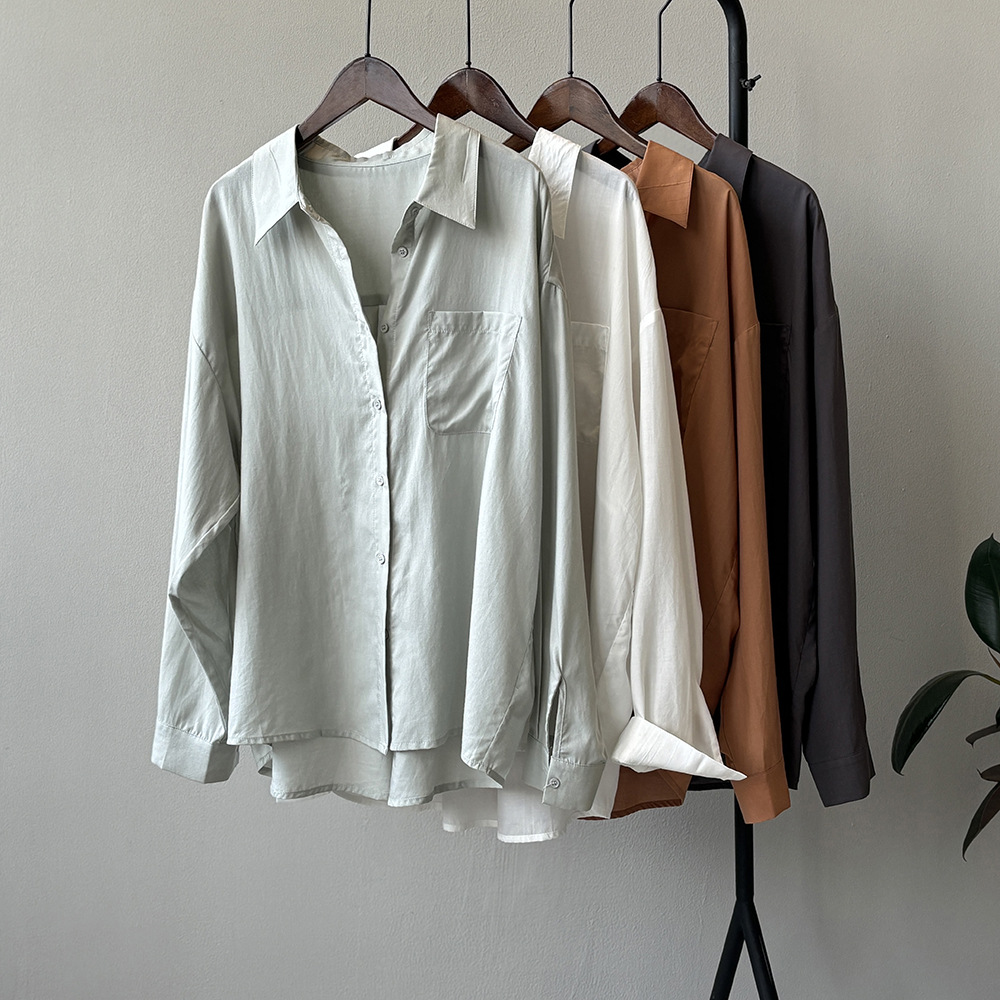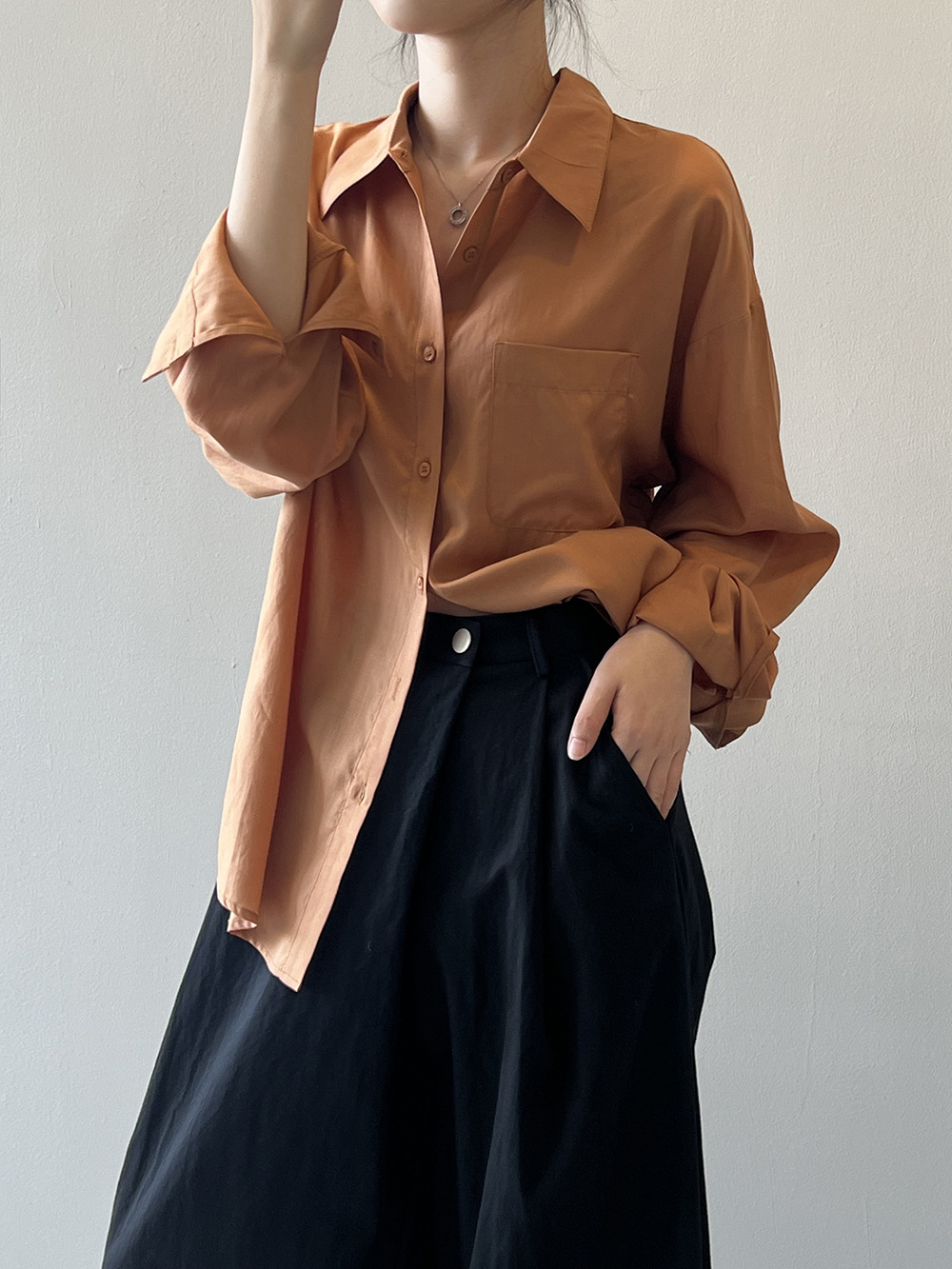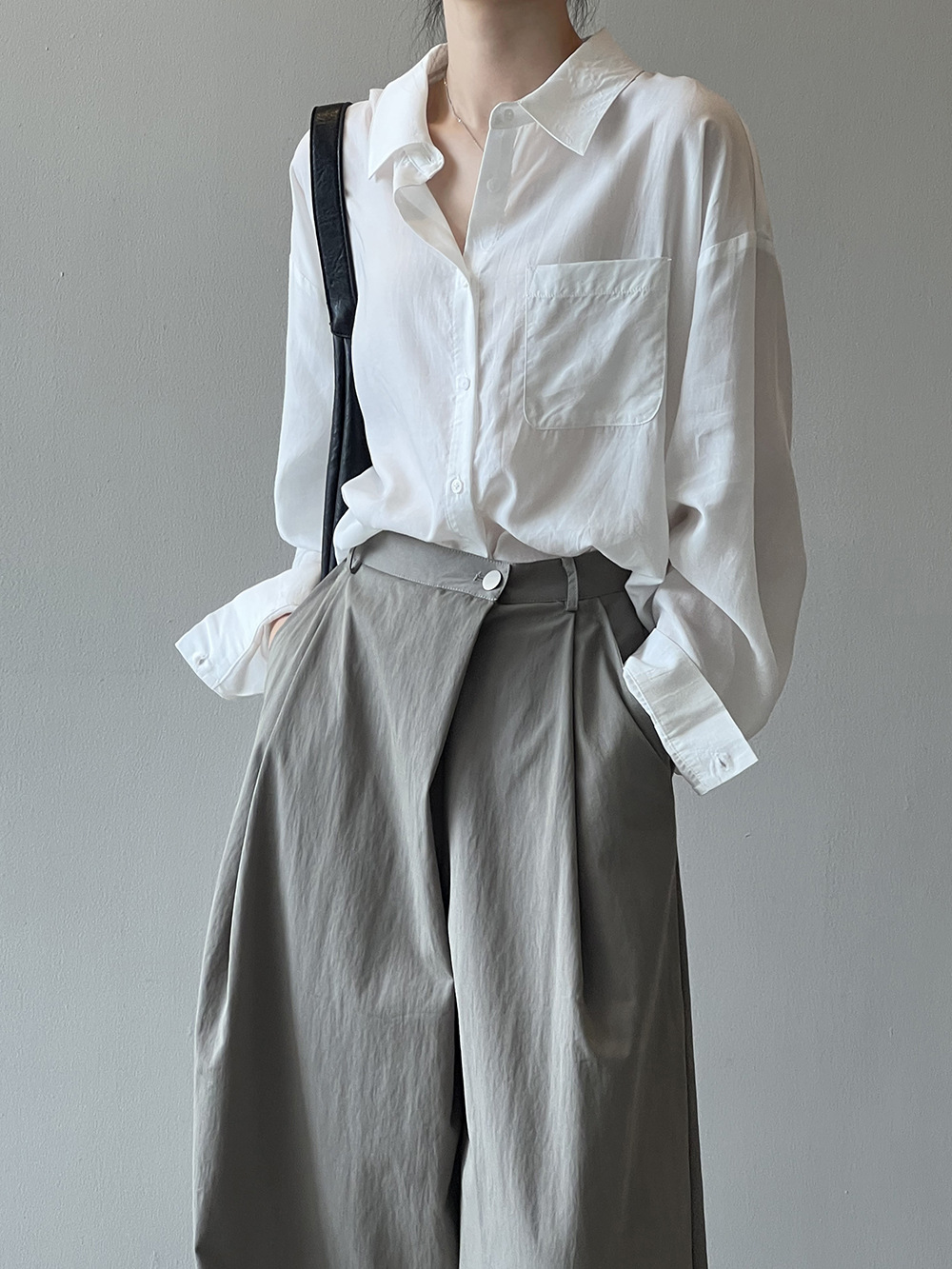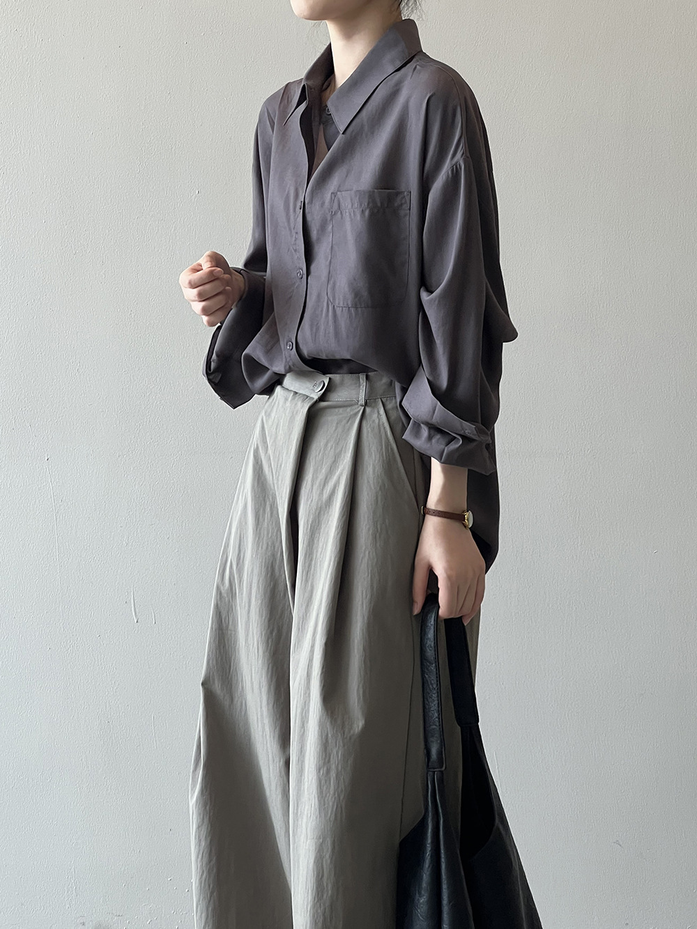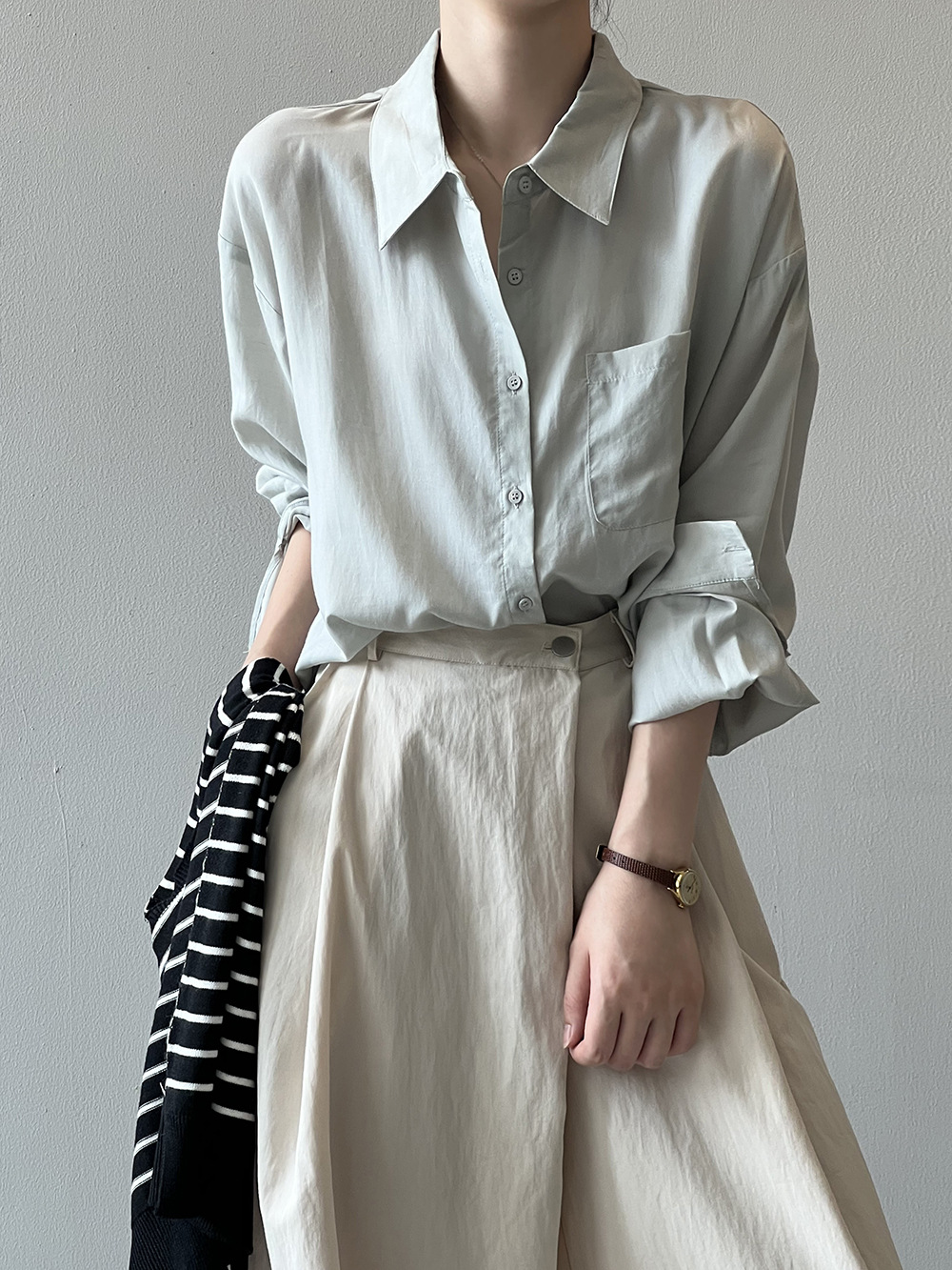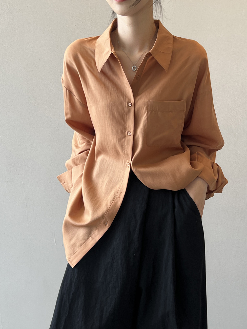 【专柜大牌品质】春夏天丝麻简约衬衫 设计感宽松叠穿衬衣82121