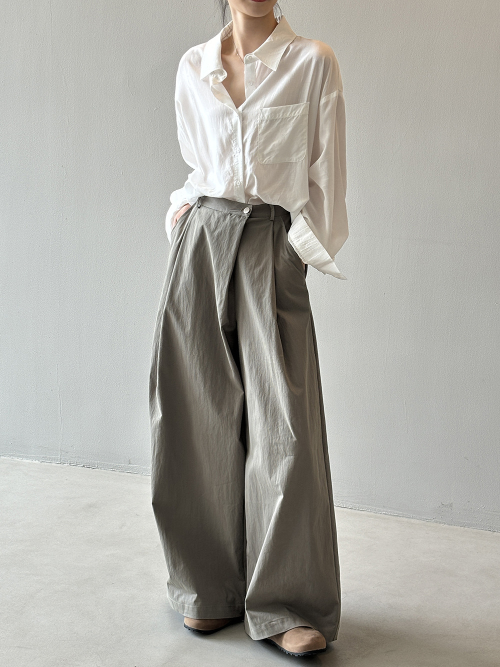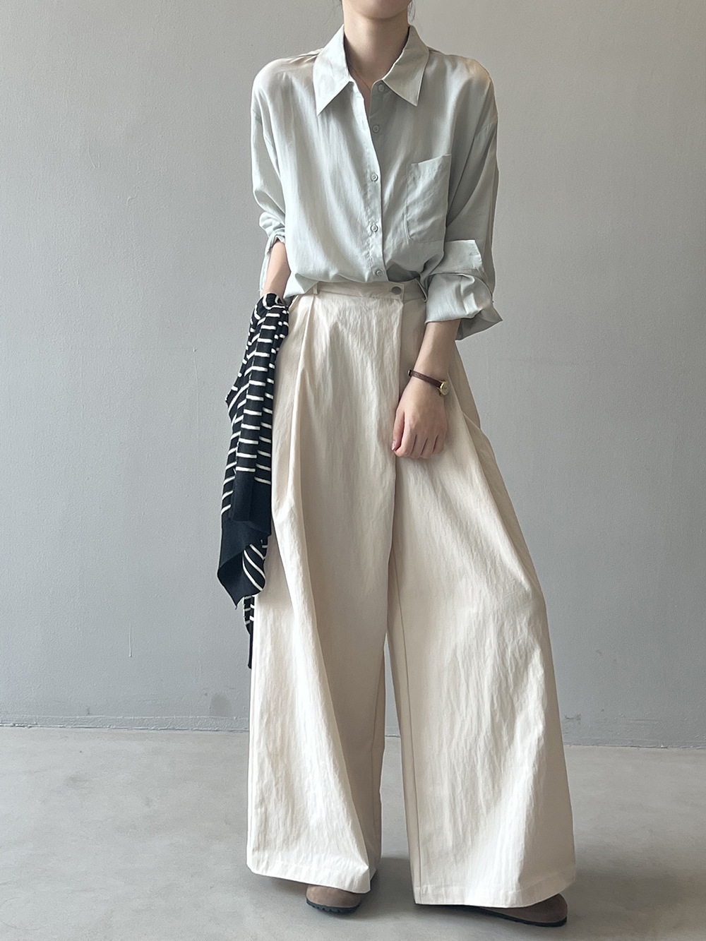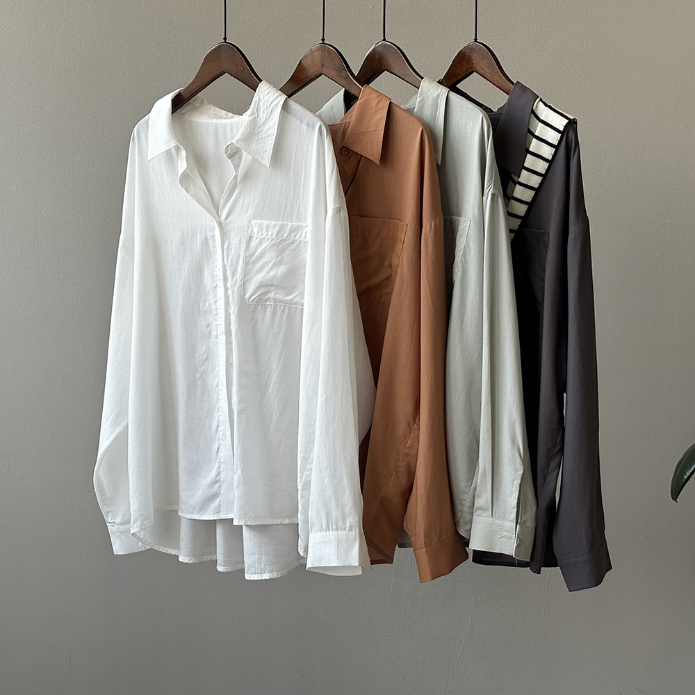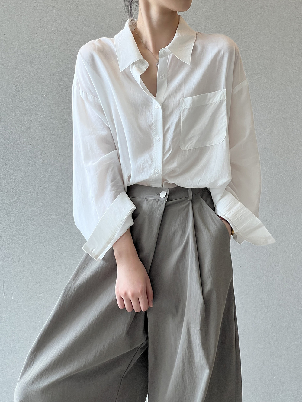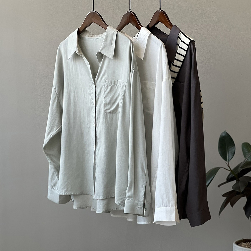 【专柜大牌品质】春夏天丝麻简约衬衫 设计感宽松叠穿衬衣82121