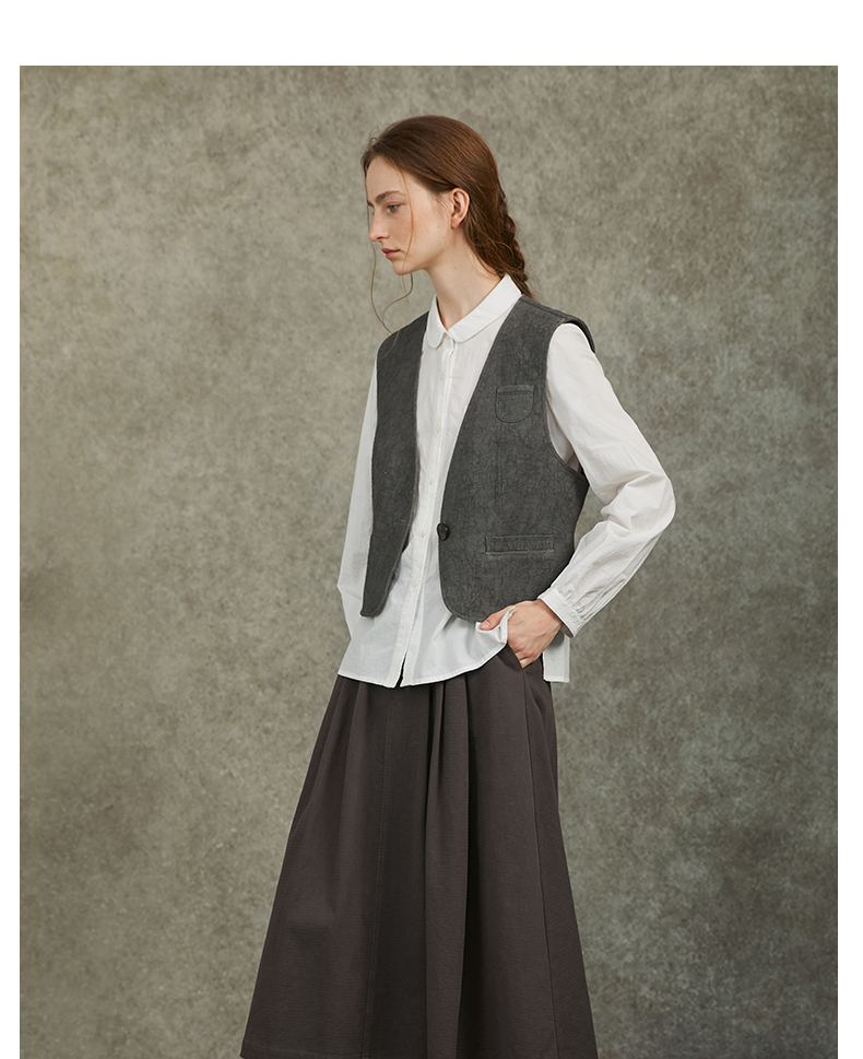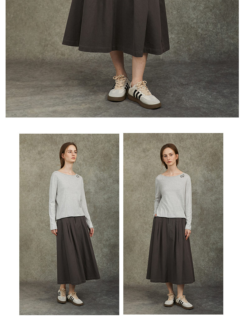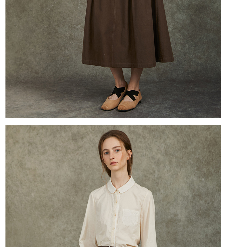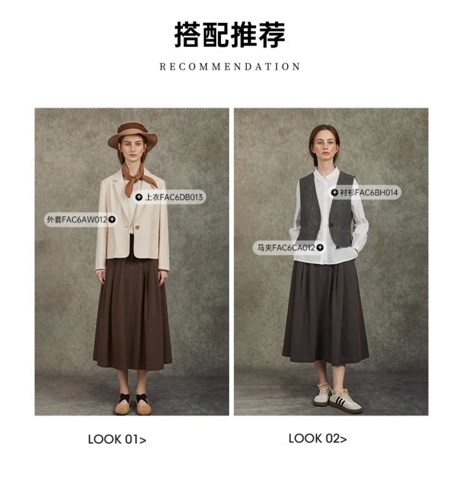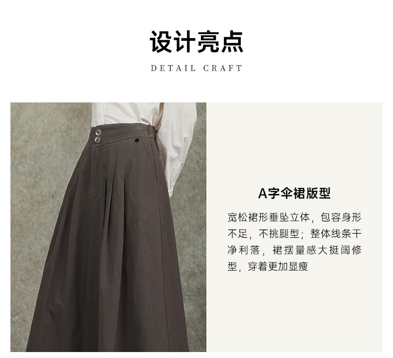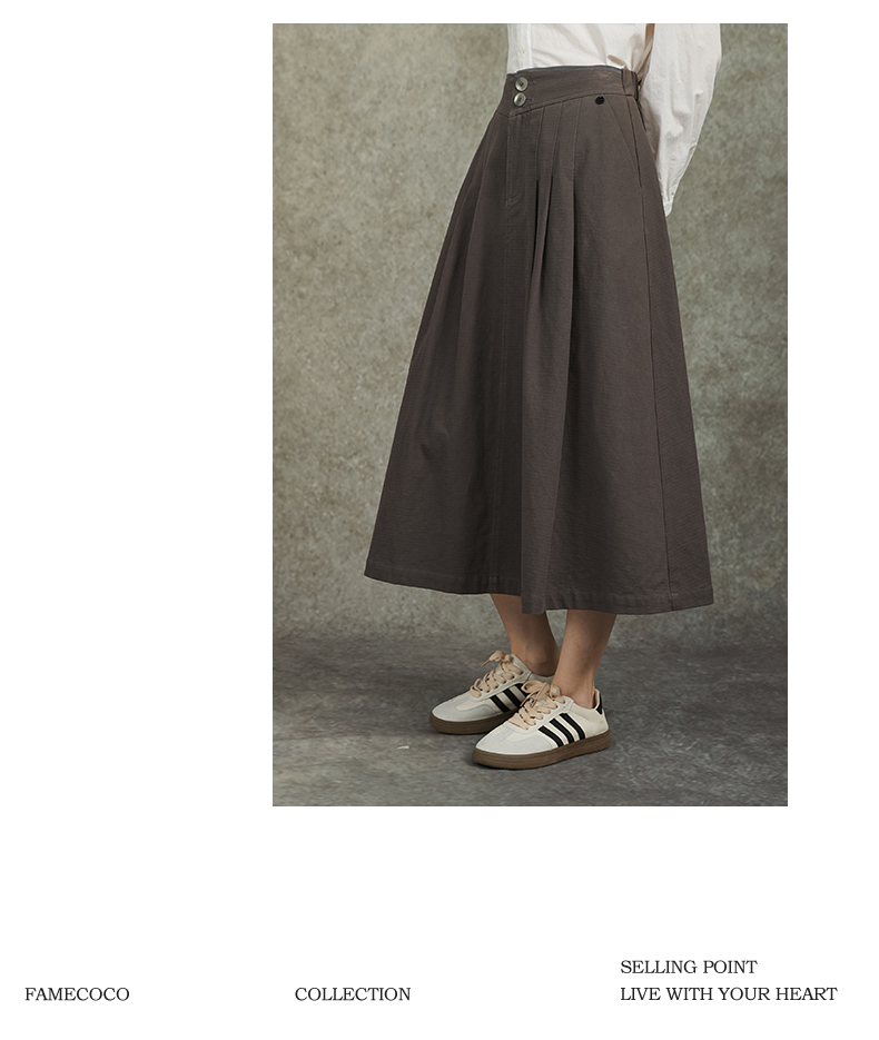 Famecoco范可儿中腰A字半裙长款纯色百搭文艺半身裙FAC6HA004