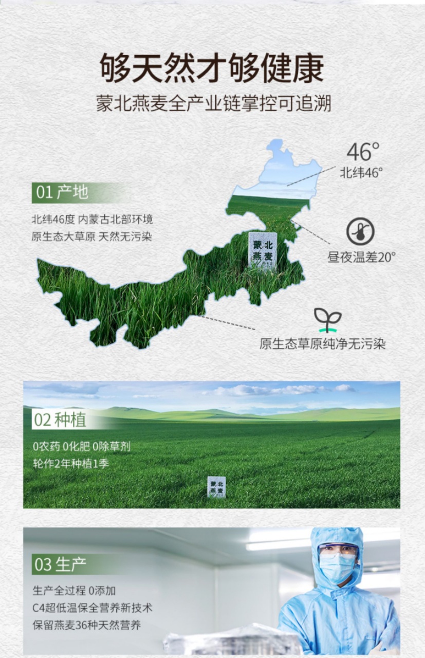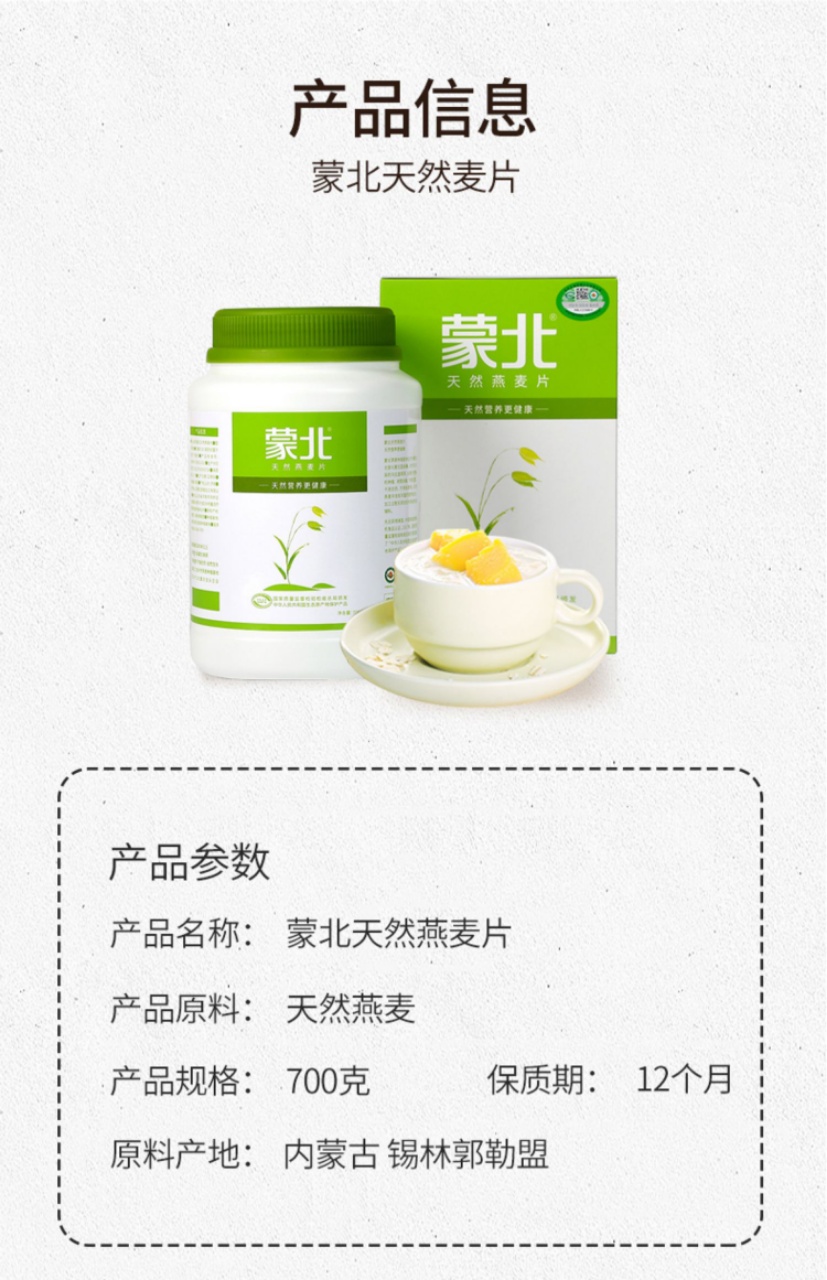 蒙北燕麦片 天然有机 即食冲饮燕麦片 无蔗糖