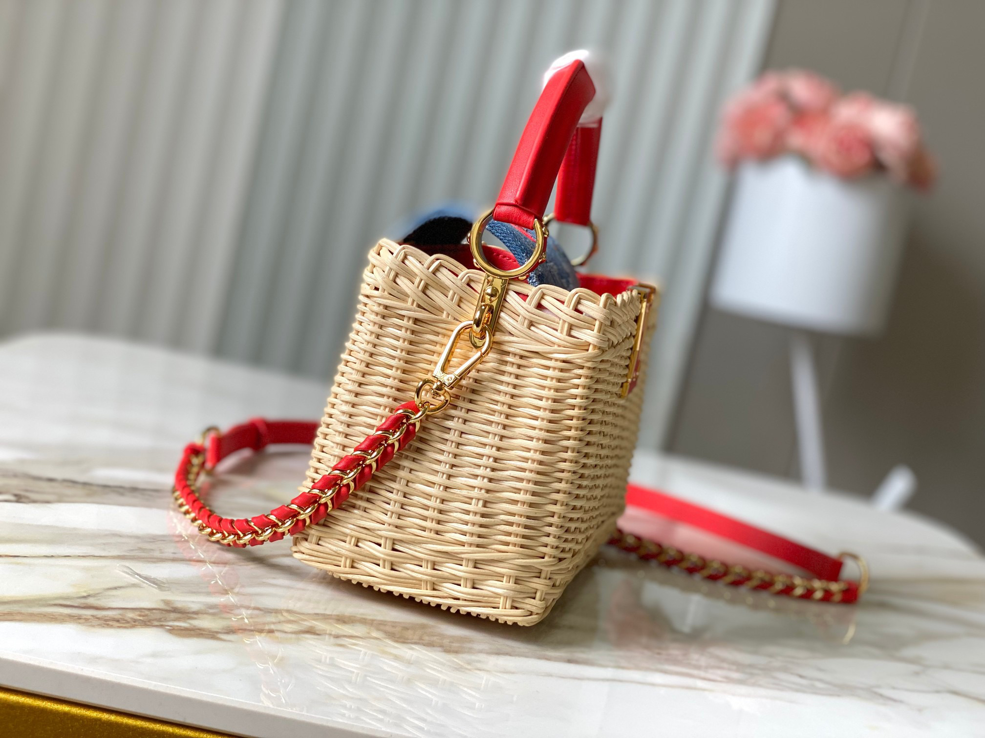 秋冬特惠💰1650 渠道级LV 新品 te级LV 动态芯片 LV X TM CAPUCINES 手袋 M14295/M48865红色樱桃竹篮 本款Capucines手袋