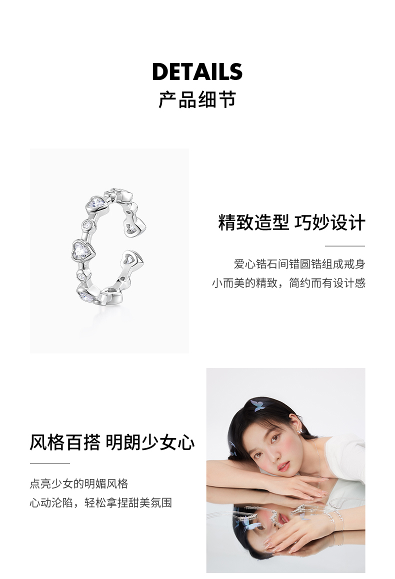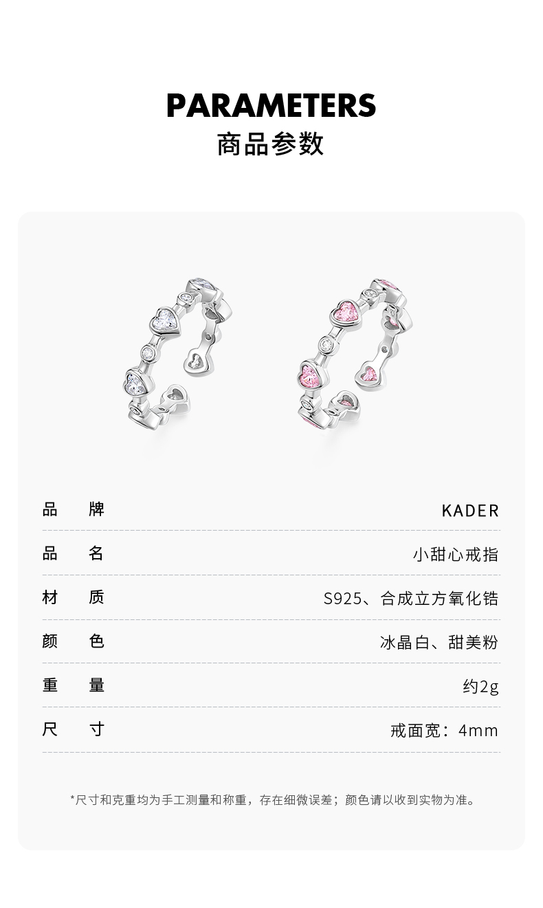 KADER卡蒂罗 多巴胺小甜心戒指 女小众设计925银时尚个性尾戒七夕节礼物